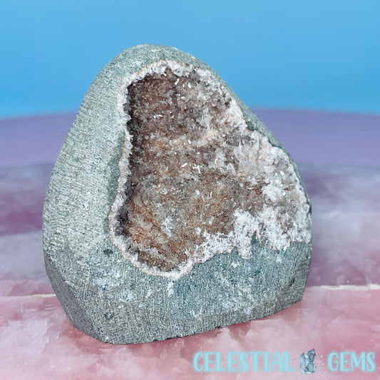 Peach Heulandite + Calcite Cluster Geode Medium Standing Freeform