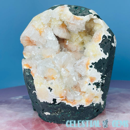 Peach Heulandite + Calcite Cluster Geode Standing Large Freeform