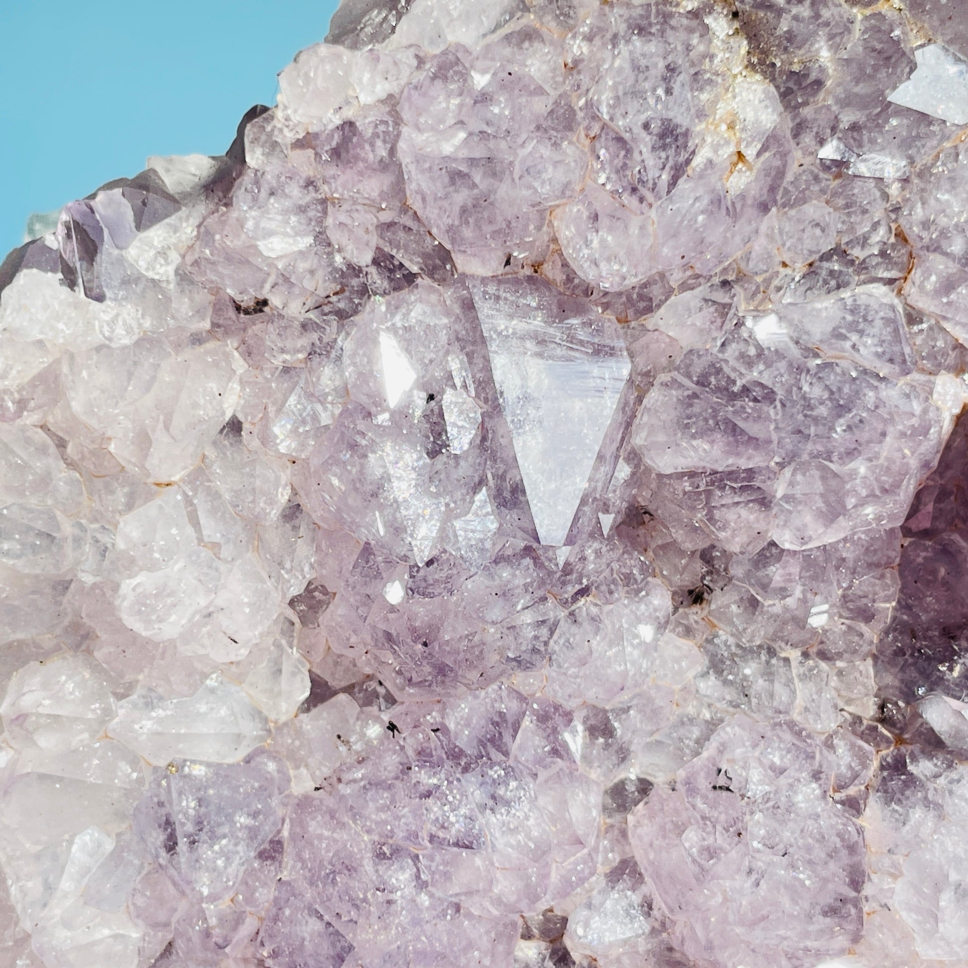 This piece has layered Amethyst with unusual multi-terminated points growing over older layers of Amethyst (see side profile for layers).