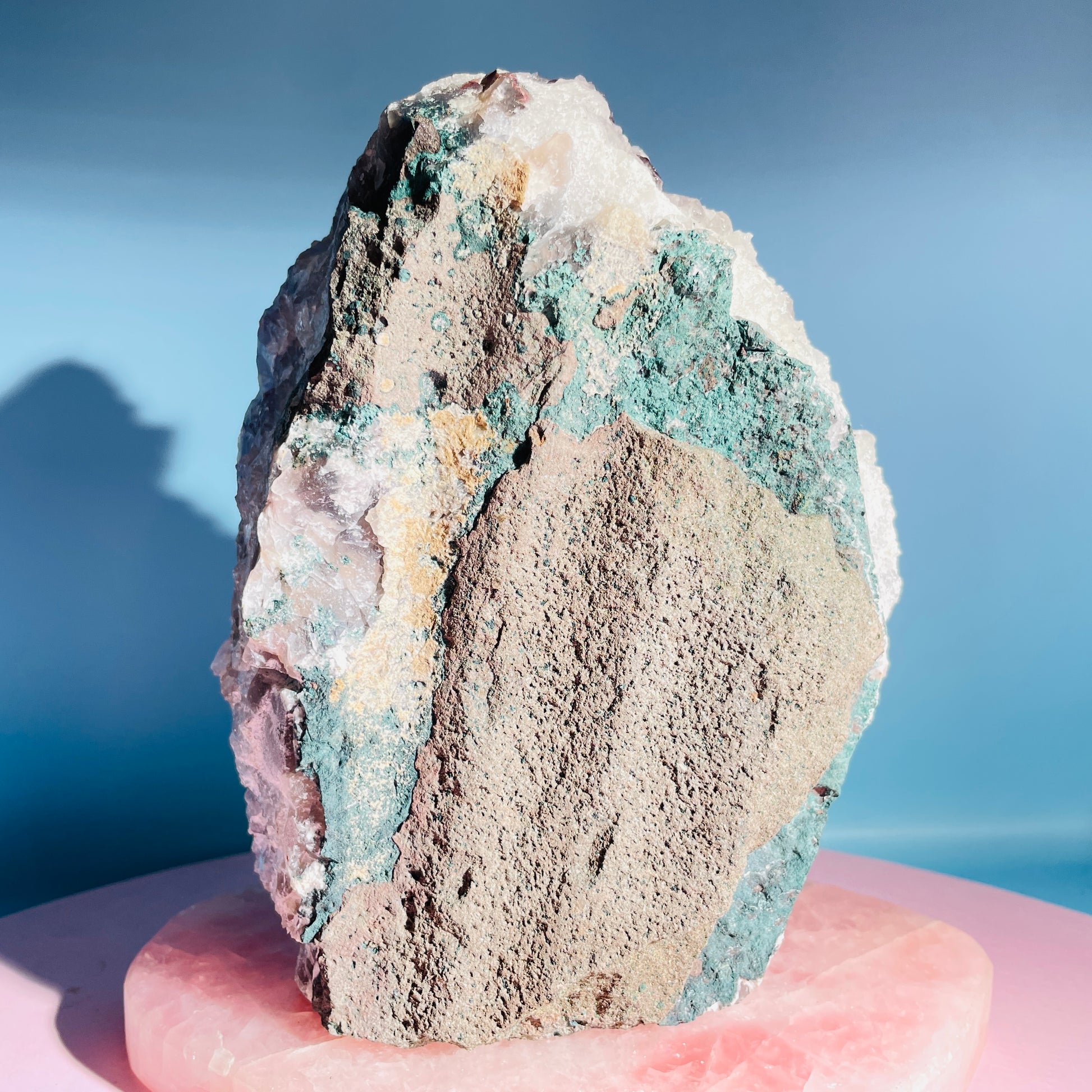 This piece has layered Amethyst with unusual multi-terminated points growing over older layers of Amethyst (see side profile for layers).