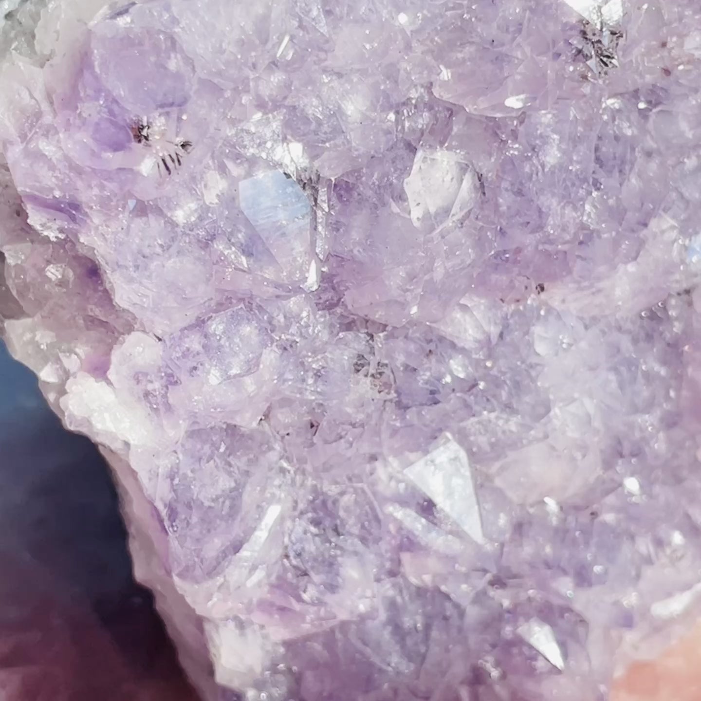 This piece has layered Amethyst with unusual multi-terminated points growing over older layers of Amethyst (see side profile for layers).