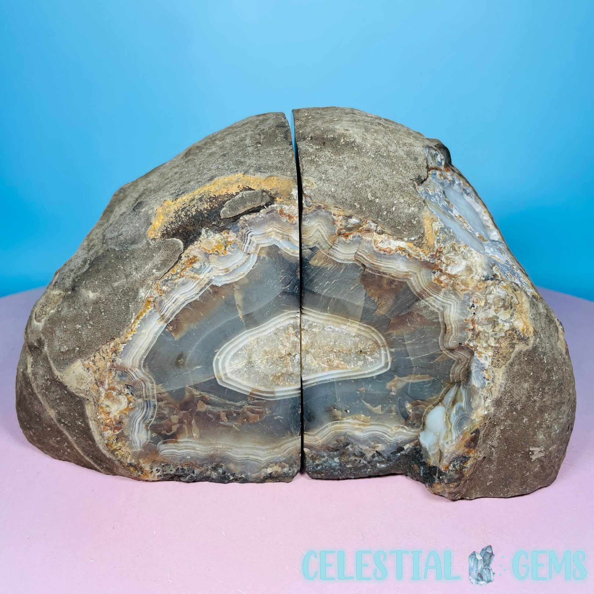 A gorgeous pair of cut and polished black Agate bookends (heat-treated). Approx. 19cm x 10.3cm x 7.4cm. Weight 2.02kg. Books sold separately.