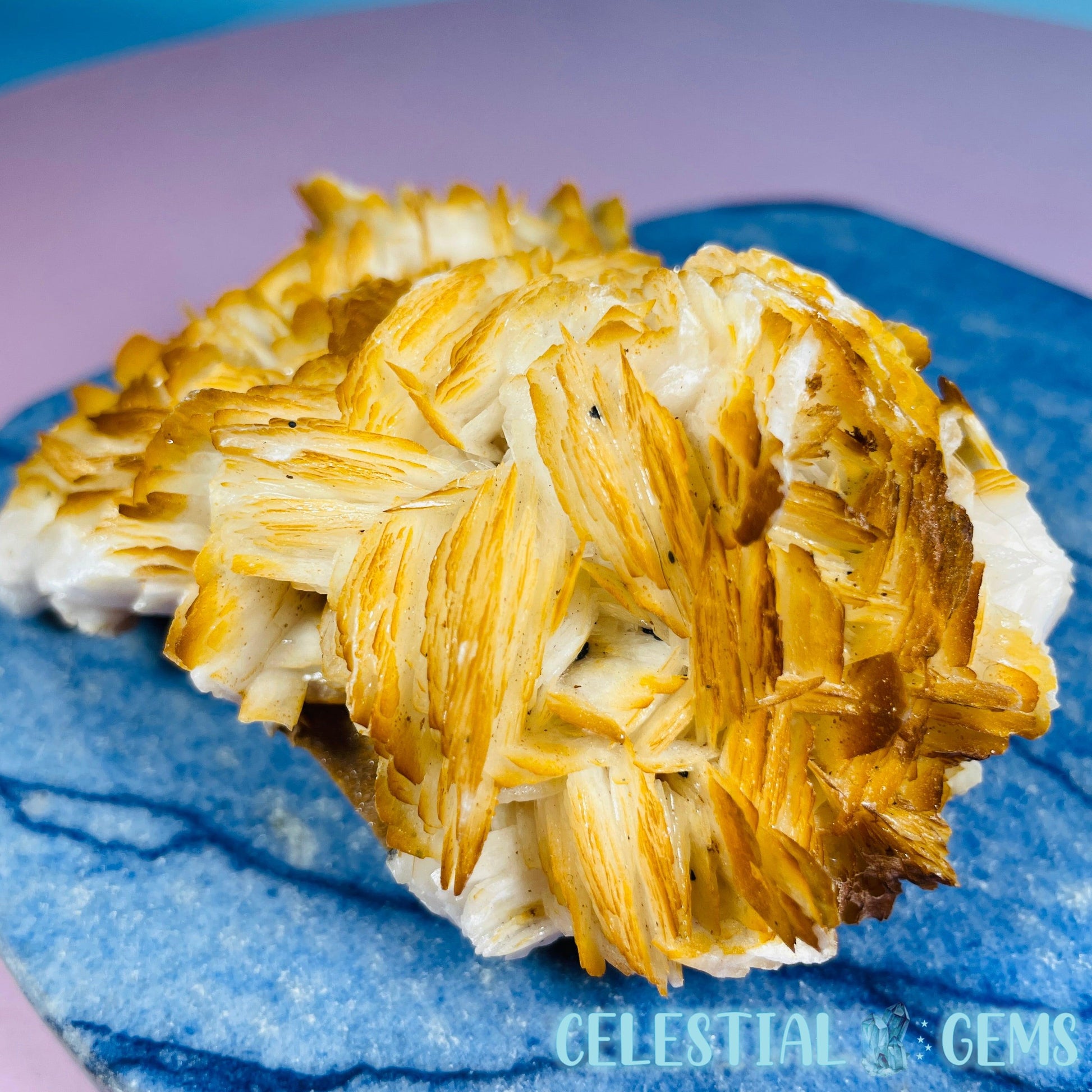 A natural cluster of bladed Barite crystals with a burnt orange colour on mixed matrix rock. Sourced from Morocco.