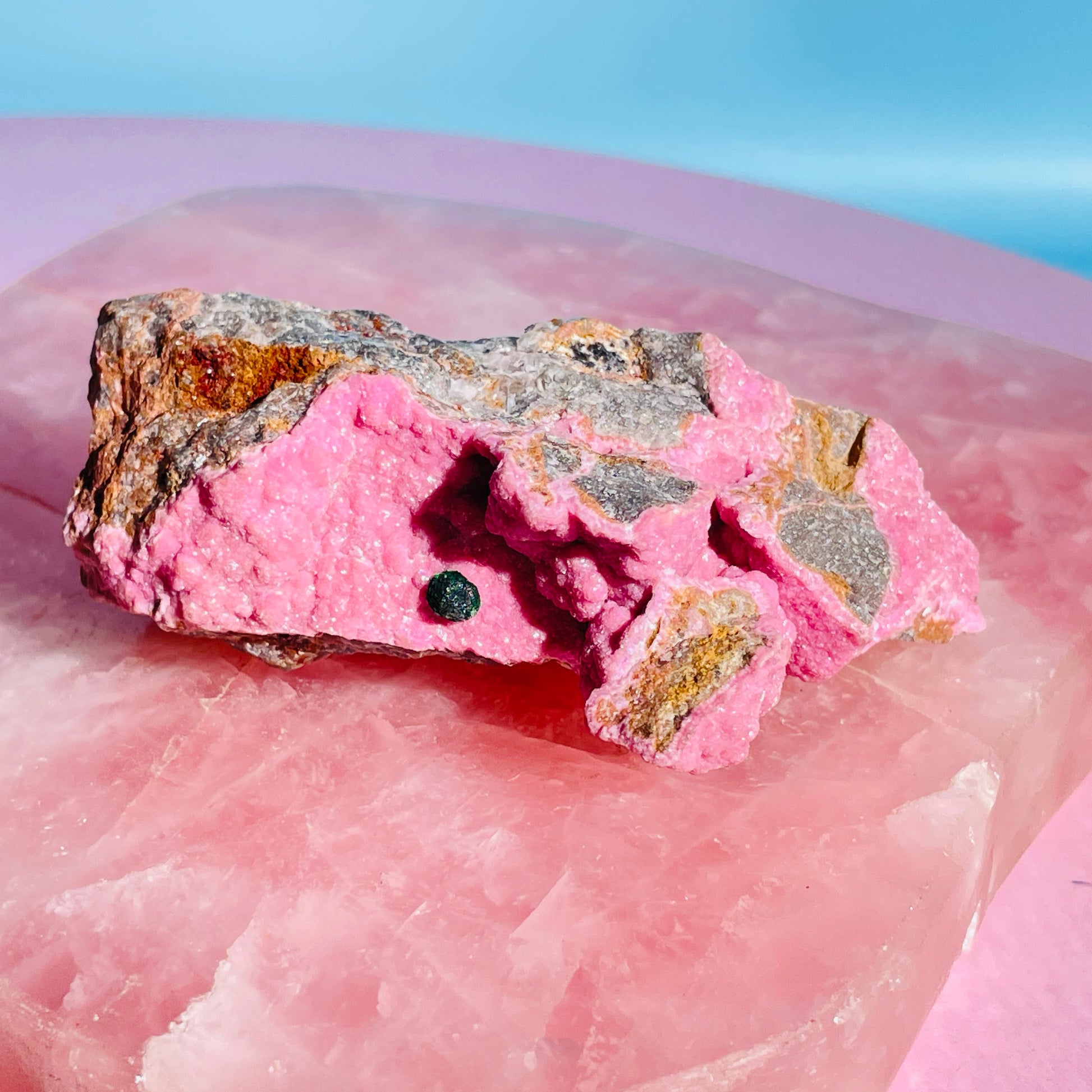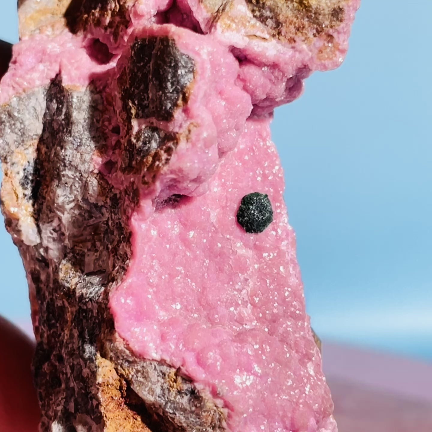 Stunning 'Salrose', aka Cobaltocalcite, is a cobalt-bearing Calcite that forms in Dolomite rock matrix and exhibits a fuschia pink crystalline colour.