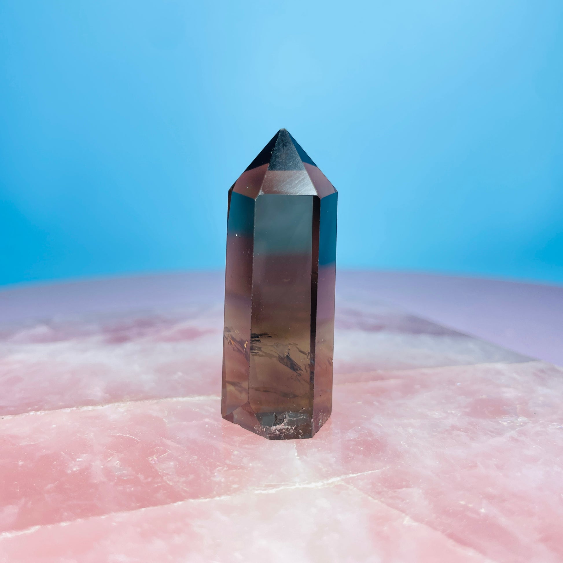 A dark Smoky Quartz small tower with lovely clarity and wispy phantoms, sourced from Brazil.