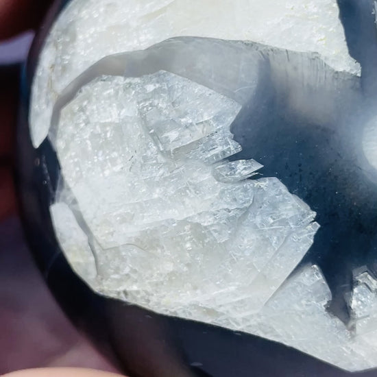 A rare combination of Volcanic Agate (Uranyl Chalcedony) and Mangano Calcite with matrix. The Volcanic Agate has a large open sparkly druzy pocket and will glow bright green and the Mangano Calcite is flashy and will glow bright pink when exposed to a UV light.