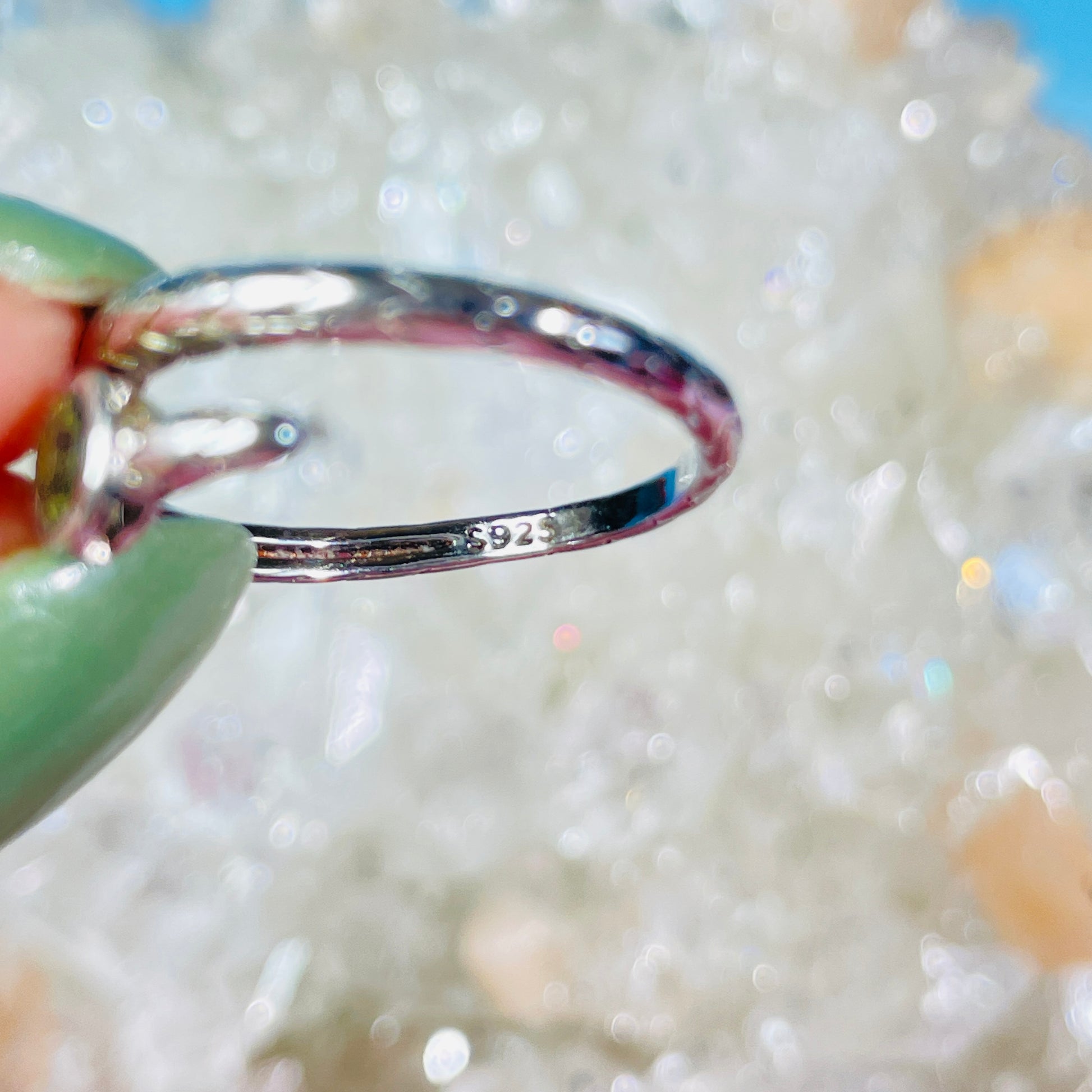 Faceted Moldavite 925 Silver Snake Adjustable Ring
