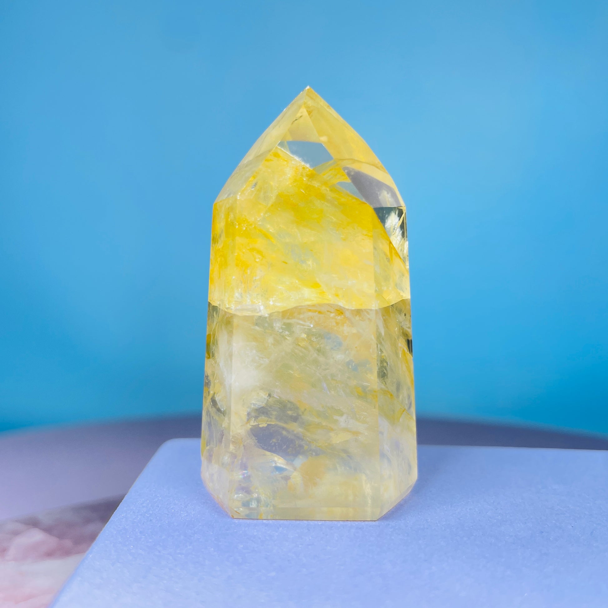 A small tower of Golden Healer Quartz with inclusions of yellow Limonite Hematite, sourced from Brazil.