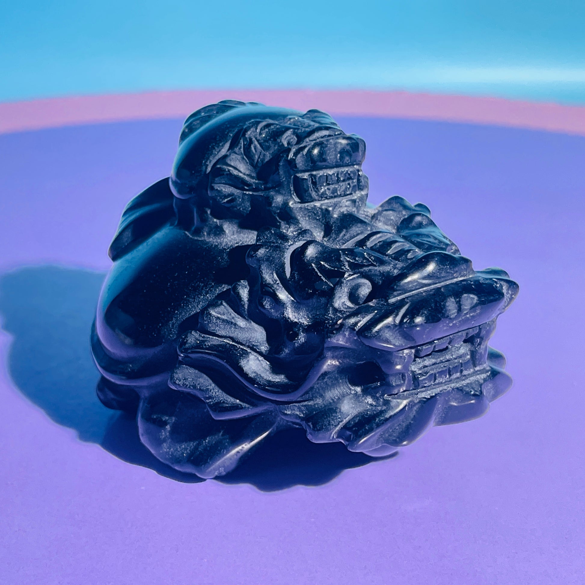 Obsidian 'Pixiu' Dragon + Baby Pixiu Medium Carving
