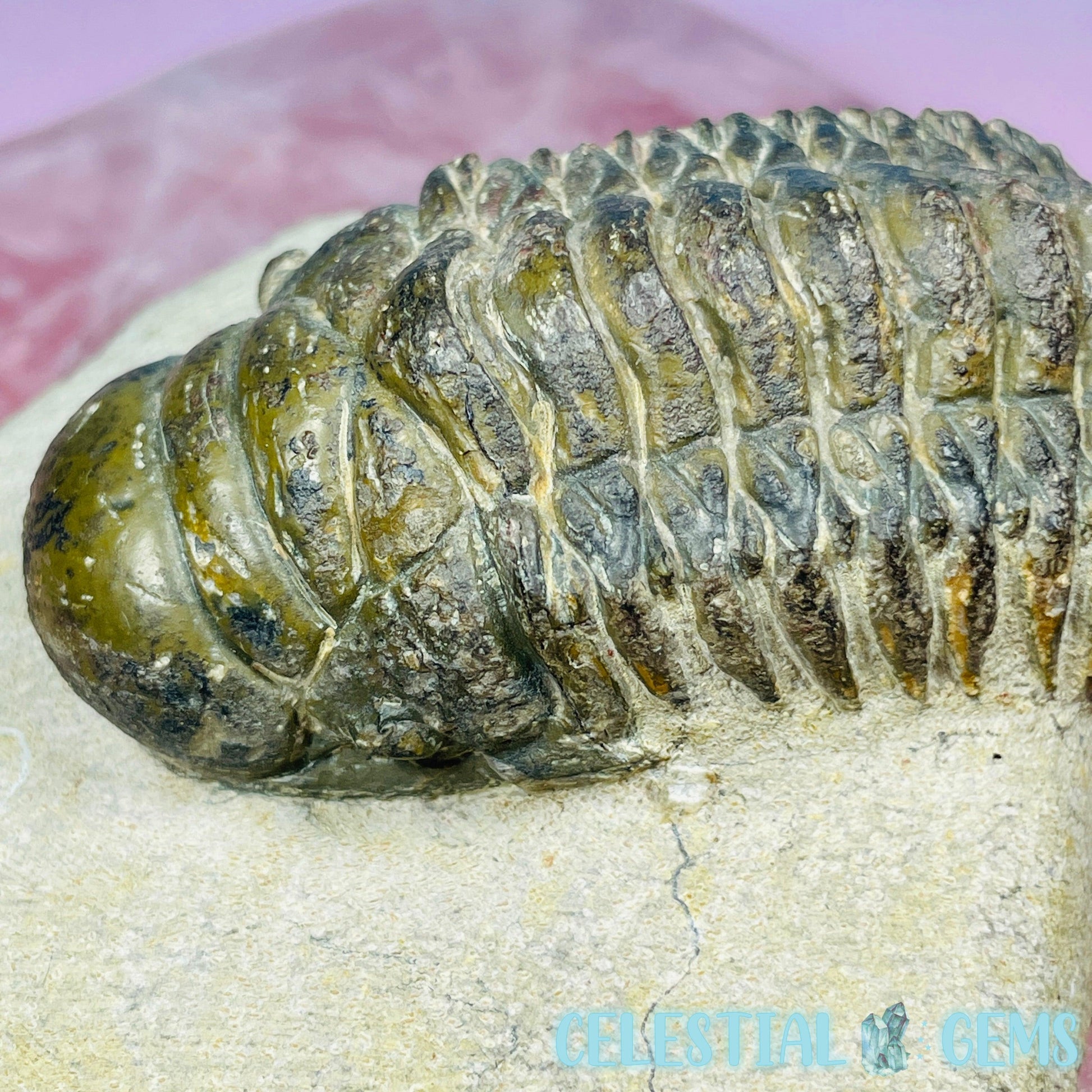 This fossil has incredible brown and black banded colour still remaining on its exoskeleton as shown in the images. Situated in limestone over 400 million years old from the Devonian Period. Mined in Lghaft, Morocco, North Africa.