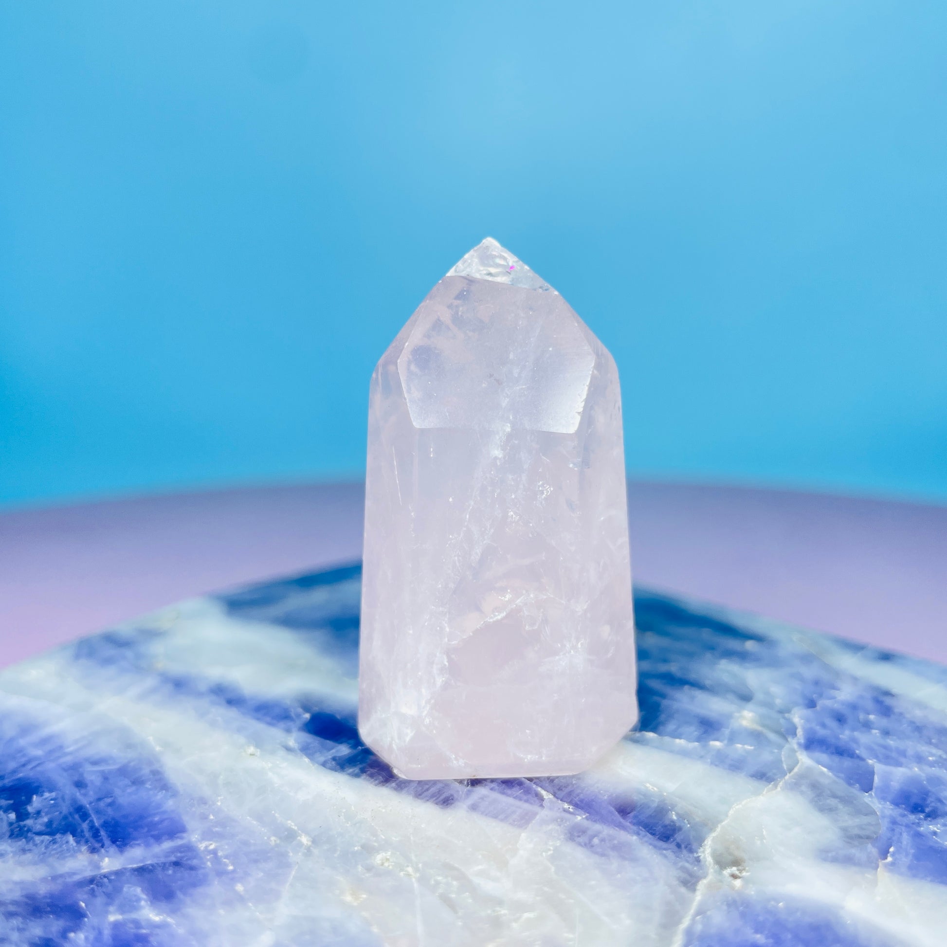 A small tower of soft pink Rose Quartz sourced from Brazil.