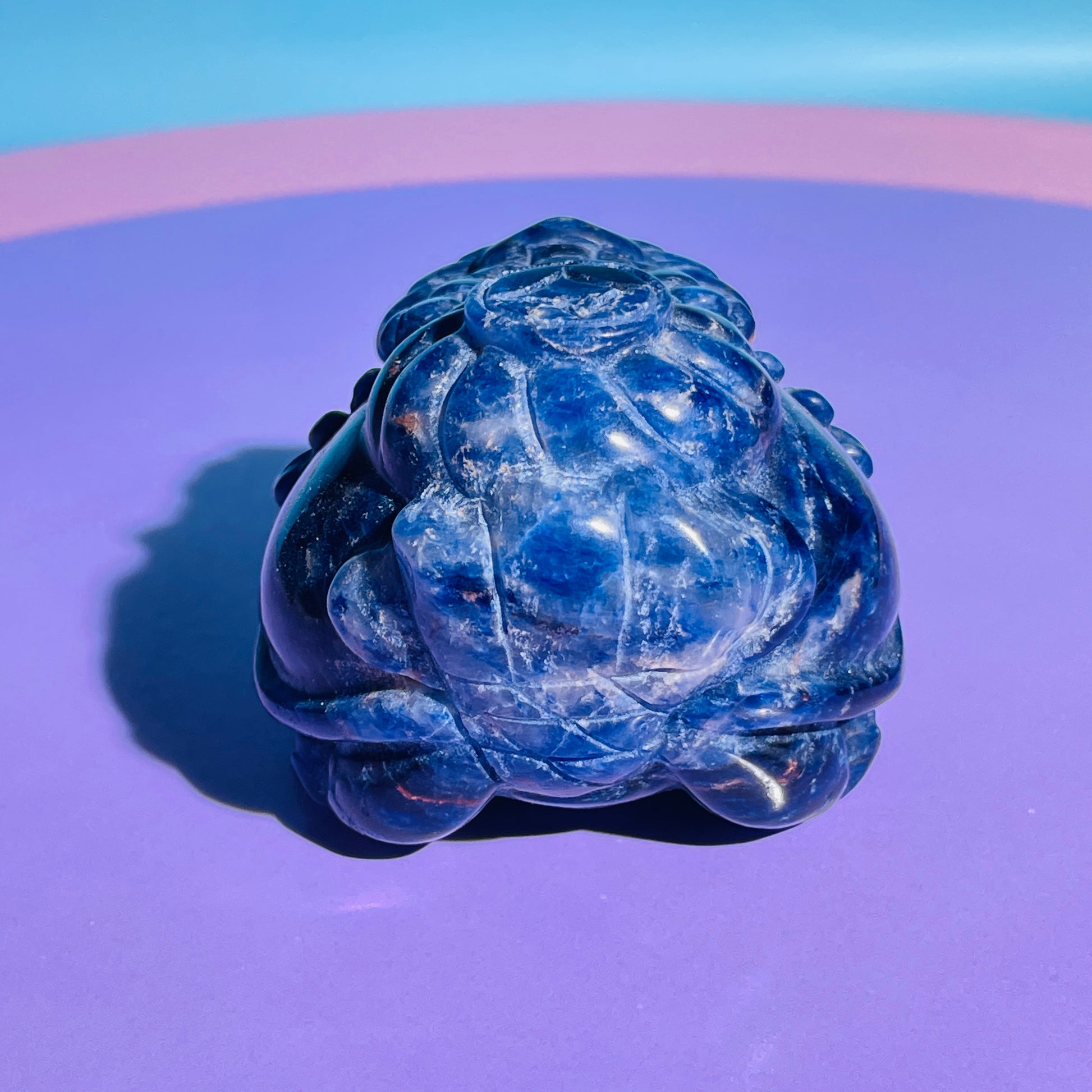 A Sodalite carving of a Pixiu - a mythological creature from ancient Chinese culture which depicts the head of a dragon and the body of a frog, turtle or lion. The Pixiu is a symbol of luck, fortune and is a protector of souls and the way of feng shui.