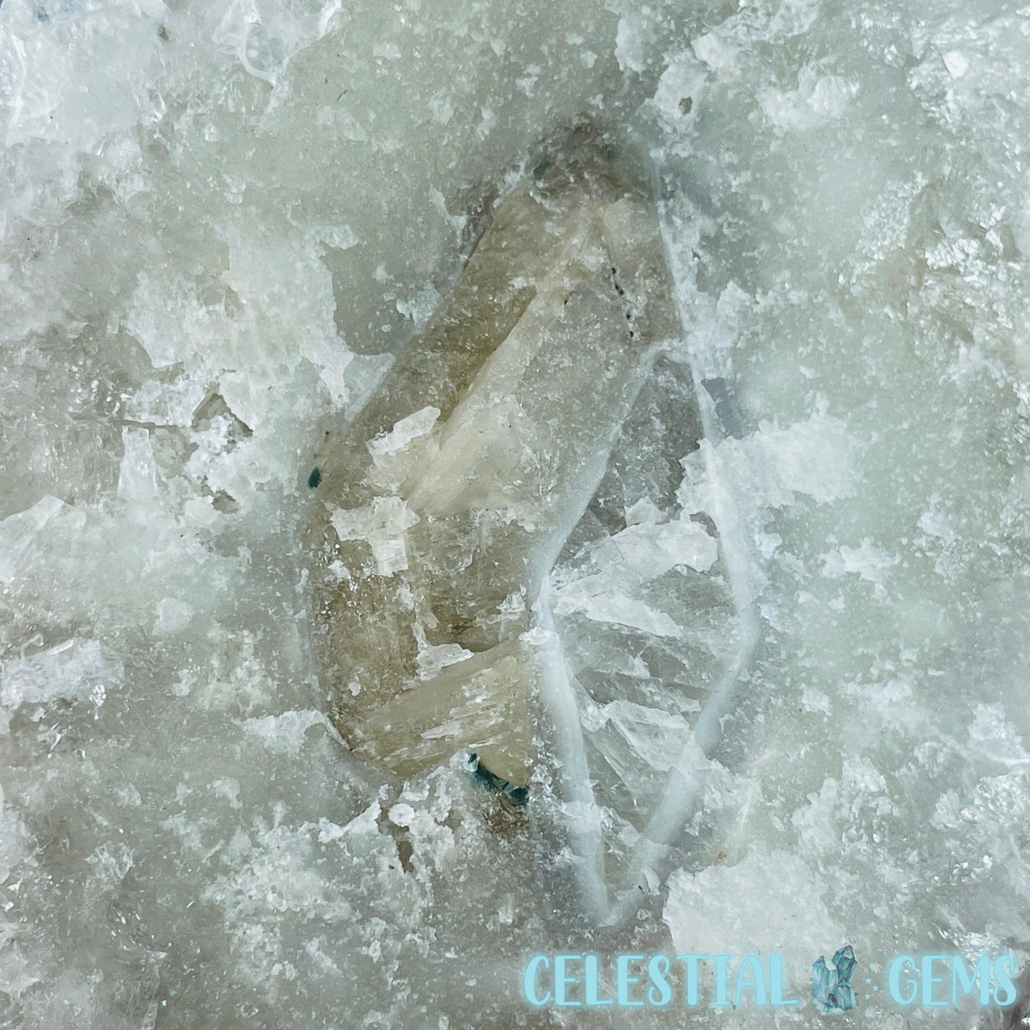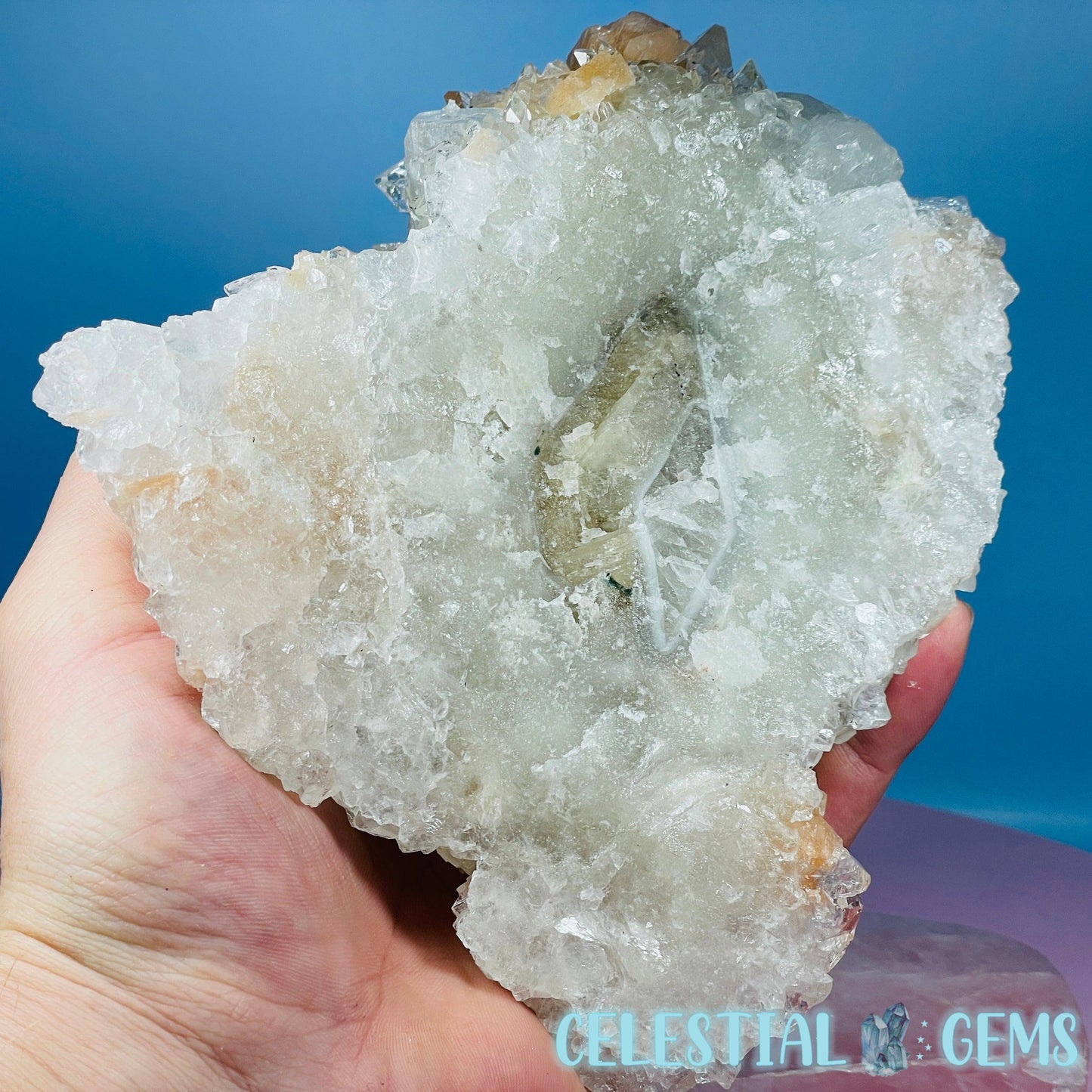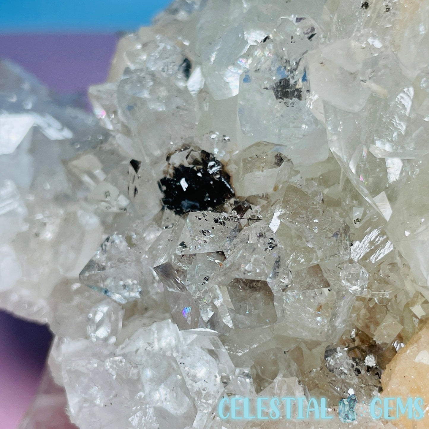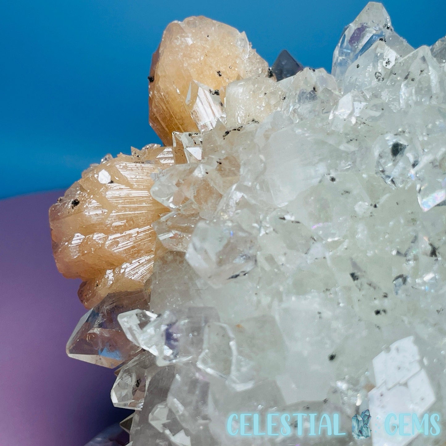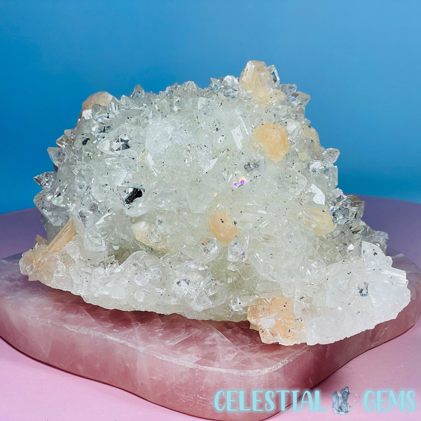 This is from a very high quality batch of Grade A Diamond Apophyllite we sourced from India, with incredible gemmy clear crystals with intense mirror shine, rainbow flashes and some double terminated point formations. This quality is rare and highly sought after.