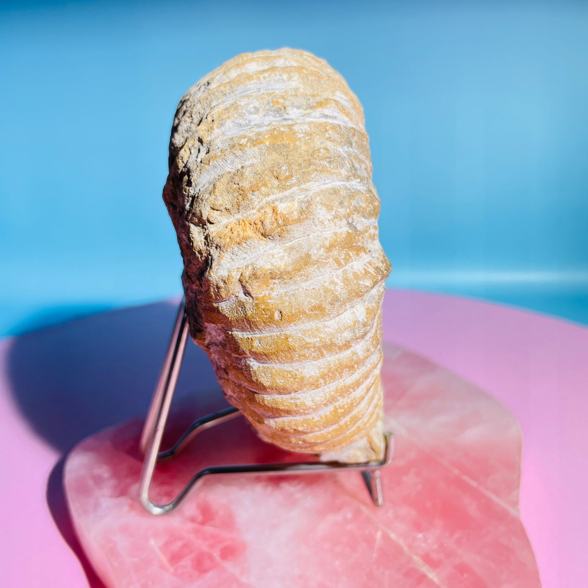 This large Ammonite weighs approx. 0.93kg and measures approx. 12cm x 11cm x 5.5cm. Stand sold separately for display only.