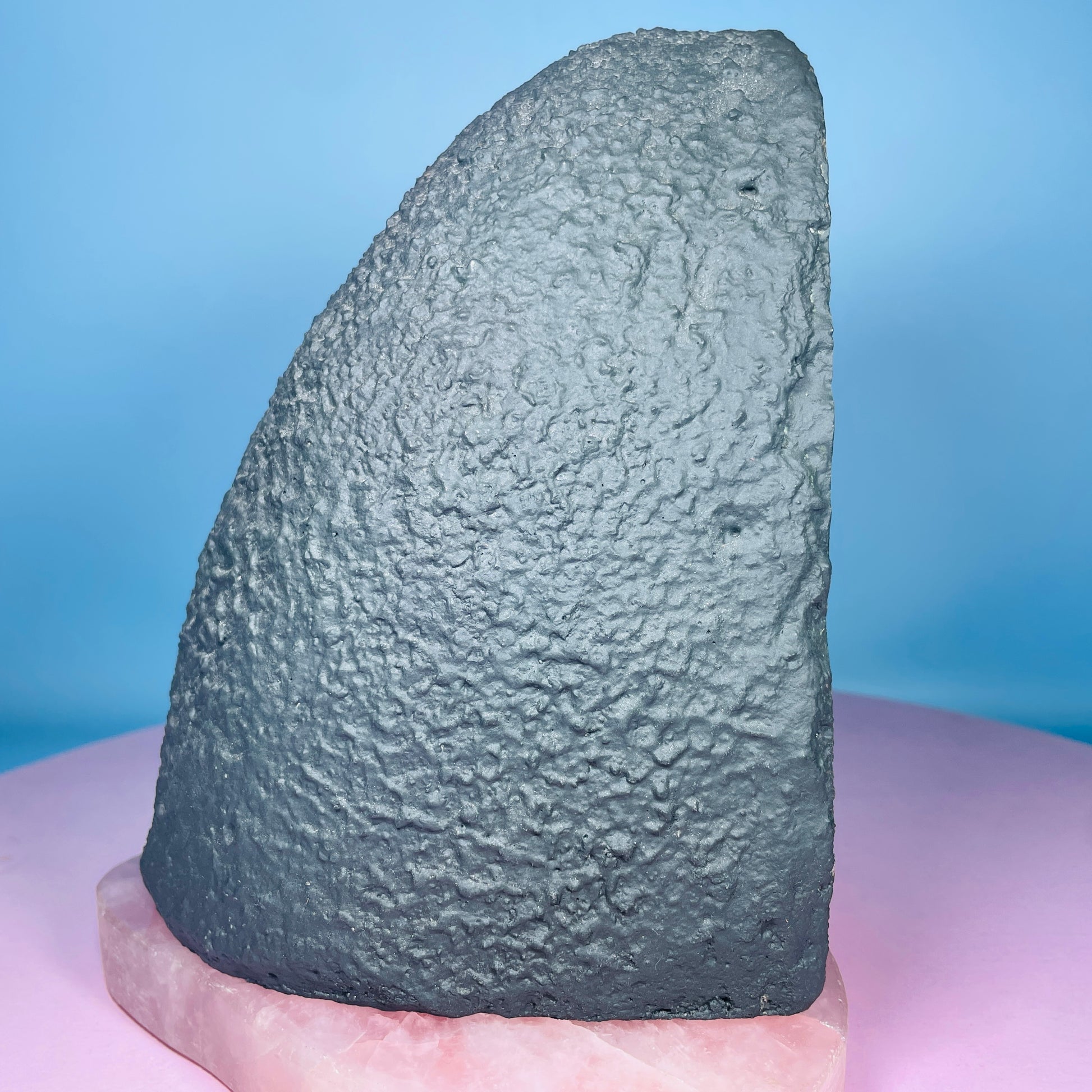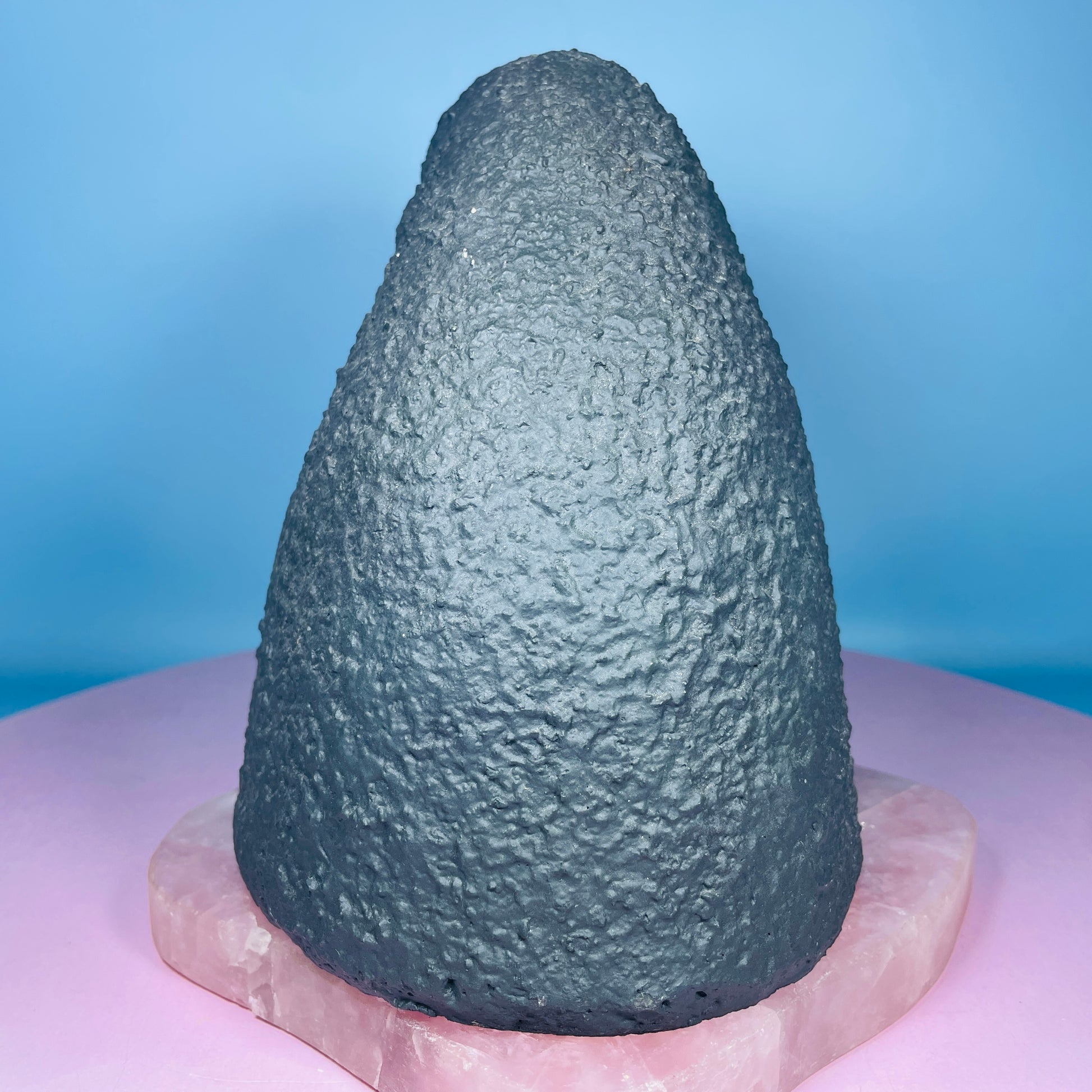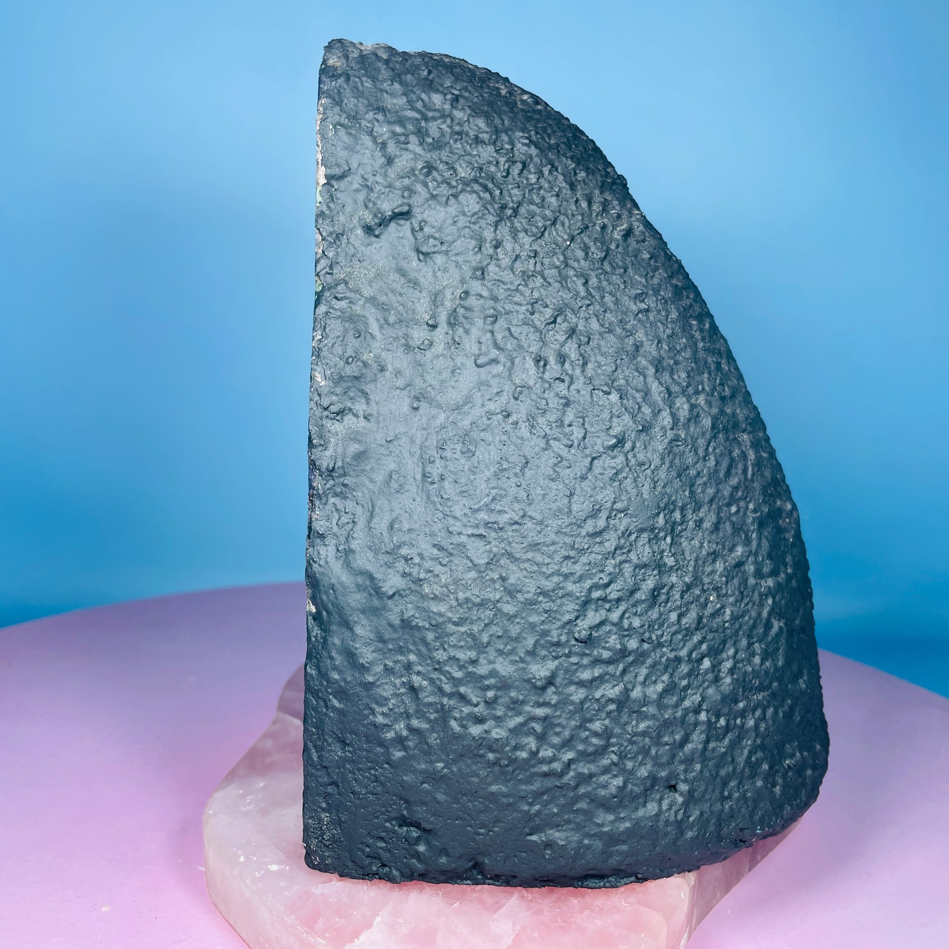 A gorgeous cluster geode of sparkly Amethyst with a thick bank of blue Agate around the edge. Standing as a 'cave' with a concrete base and rear. Small-sized. Sourced from Brazil.