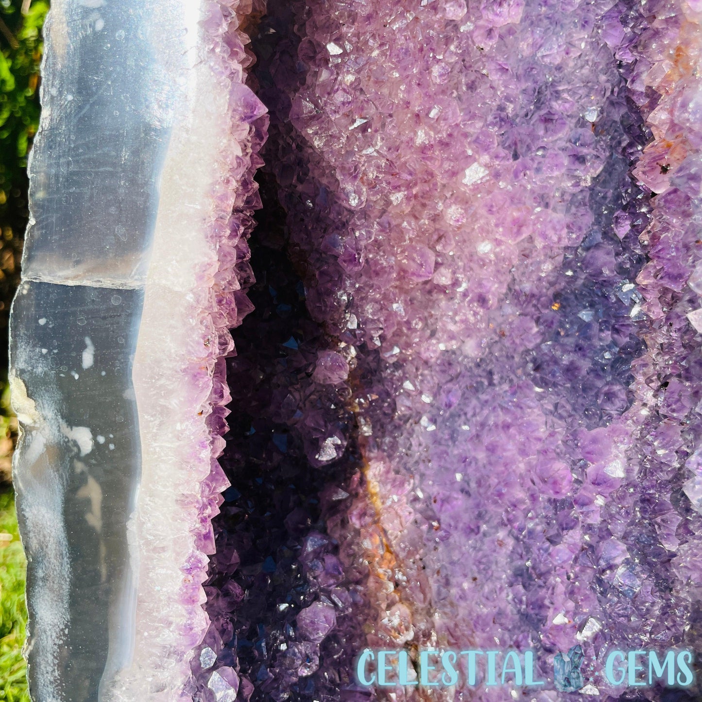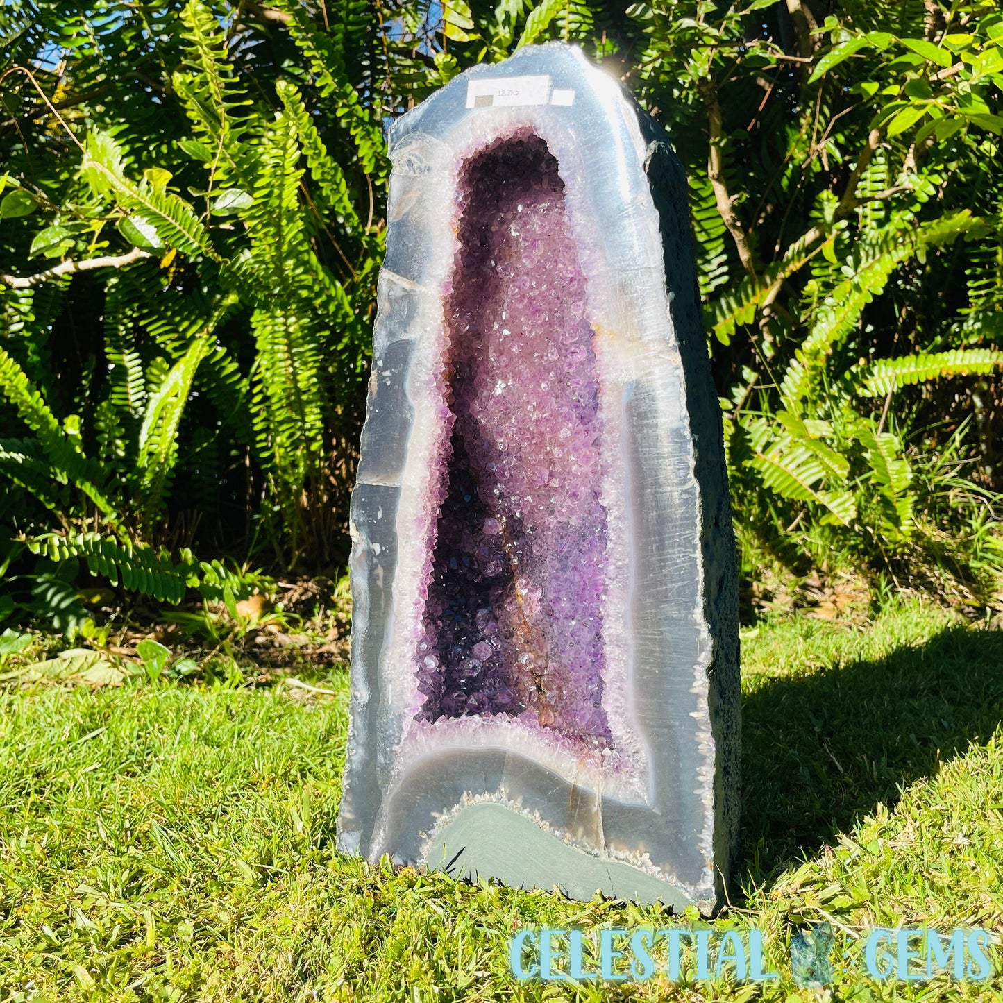 We have photographed and videoed our Amethyst caves in full sunlight and also in low-light to show different lighting against each cave.