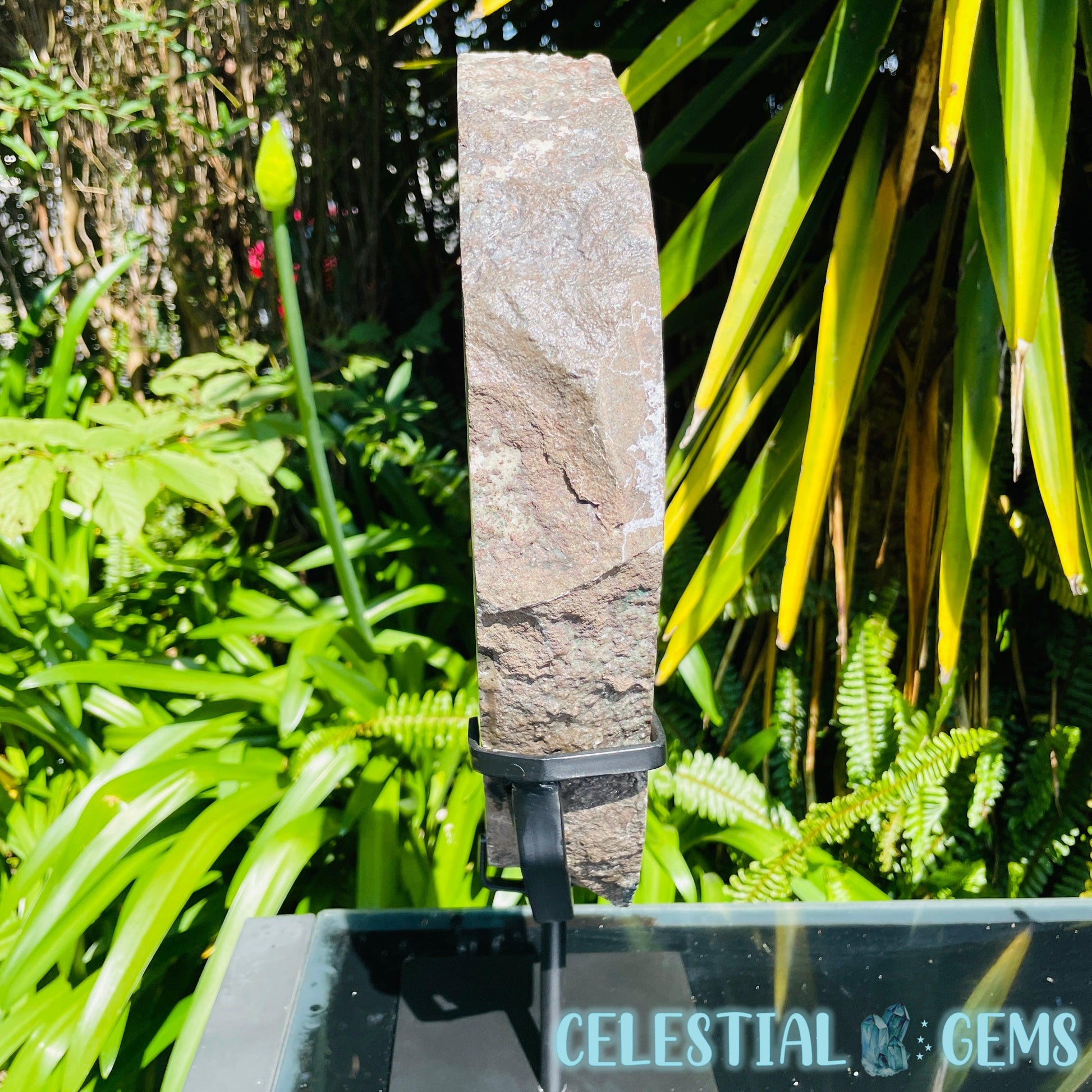 This large slice measures 32.5cm x 28cm x 5.7cm. Weight 8.7kg. The stand base measures 20cm x 15cm on the bottom and adds an extra 11cm height to the slice.