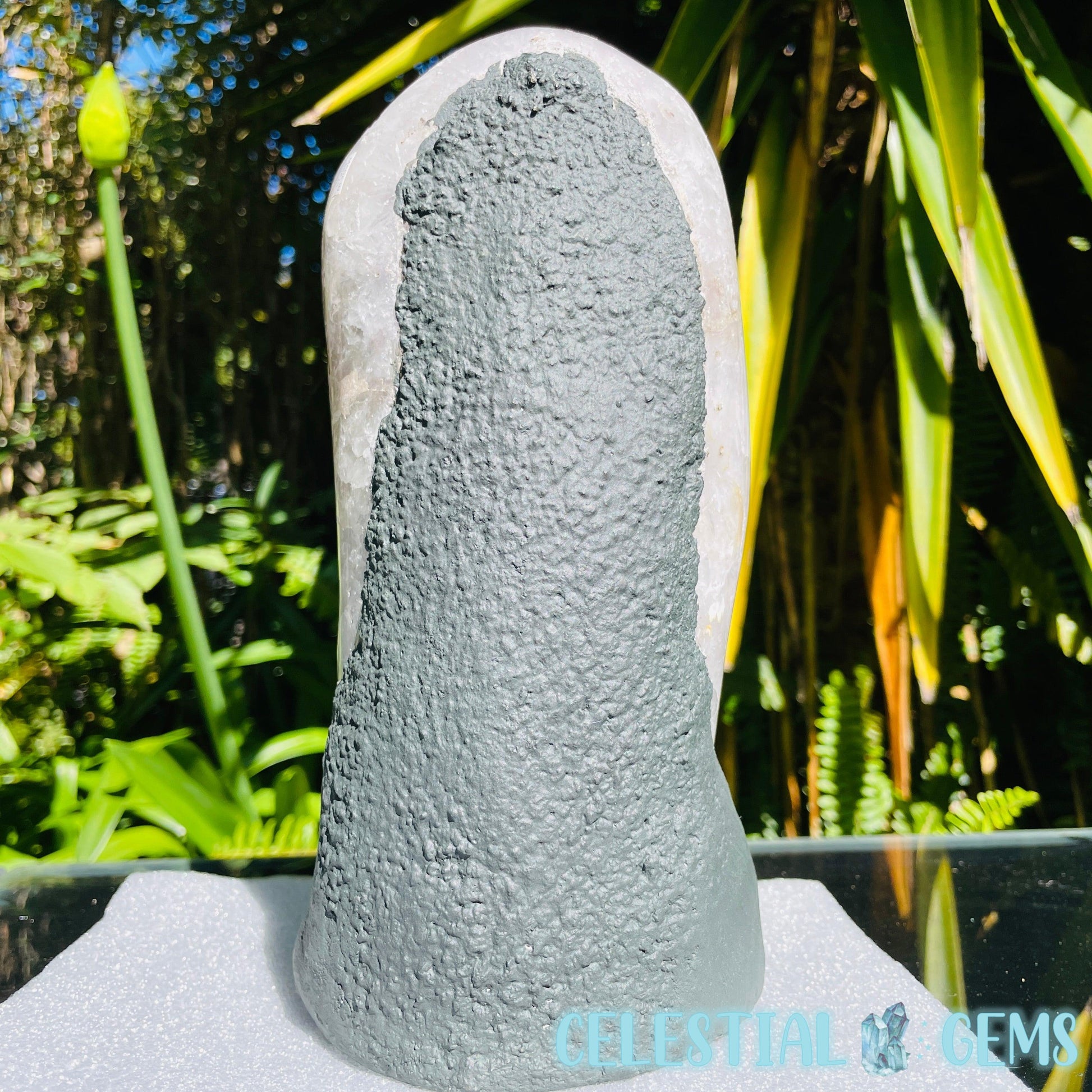 A large Amethyst cluster with dark coloured, large crystals. This cluster has a beautiful polished edge with lots of White Quartz on the sides and a concrete rear and base to make it stand.