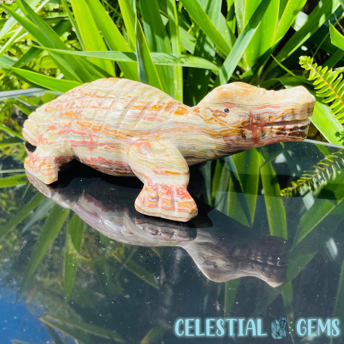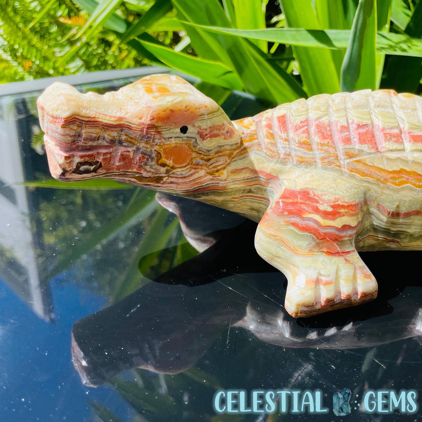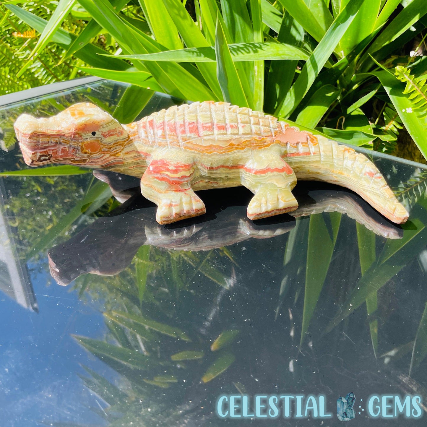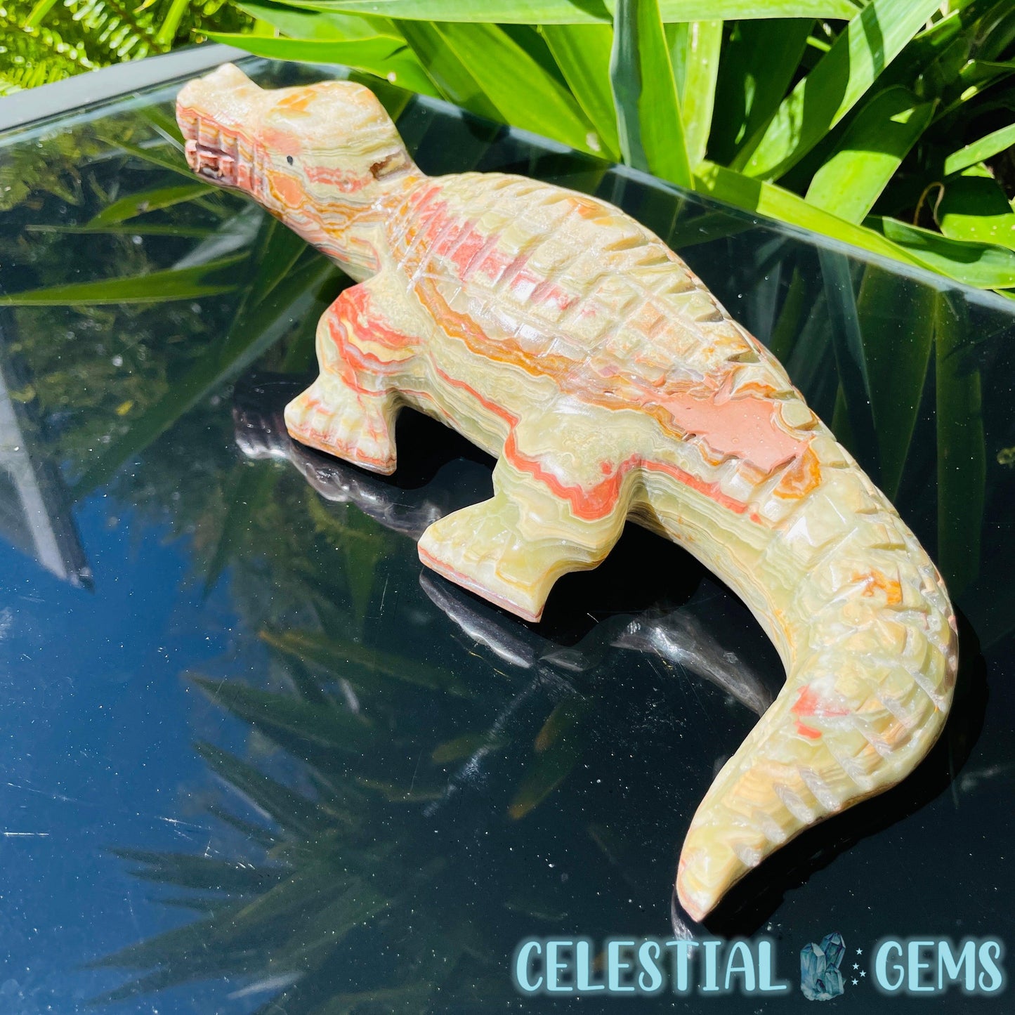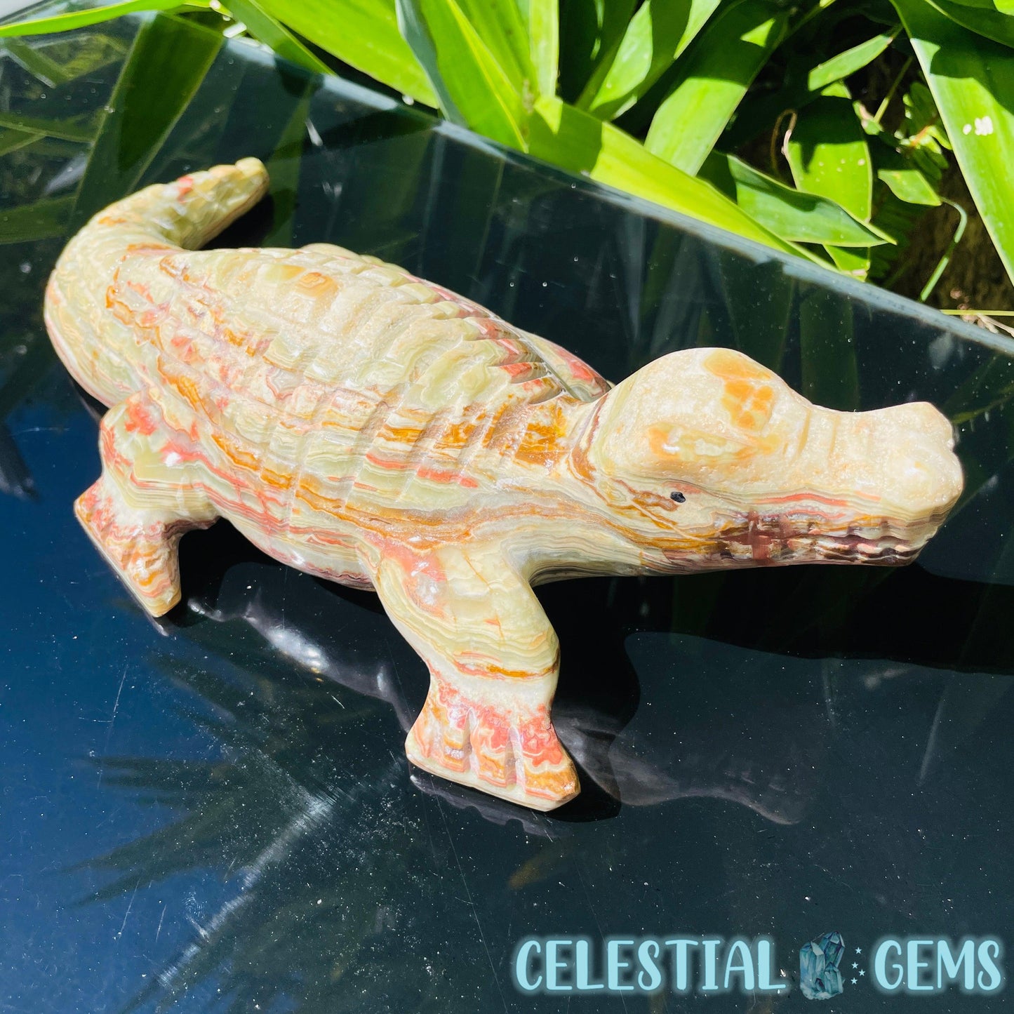 Banded Onyx Calcite Crocodile XL Carving