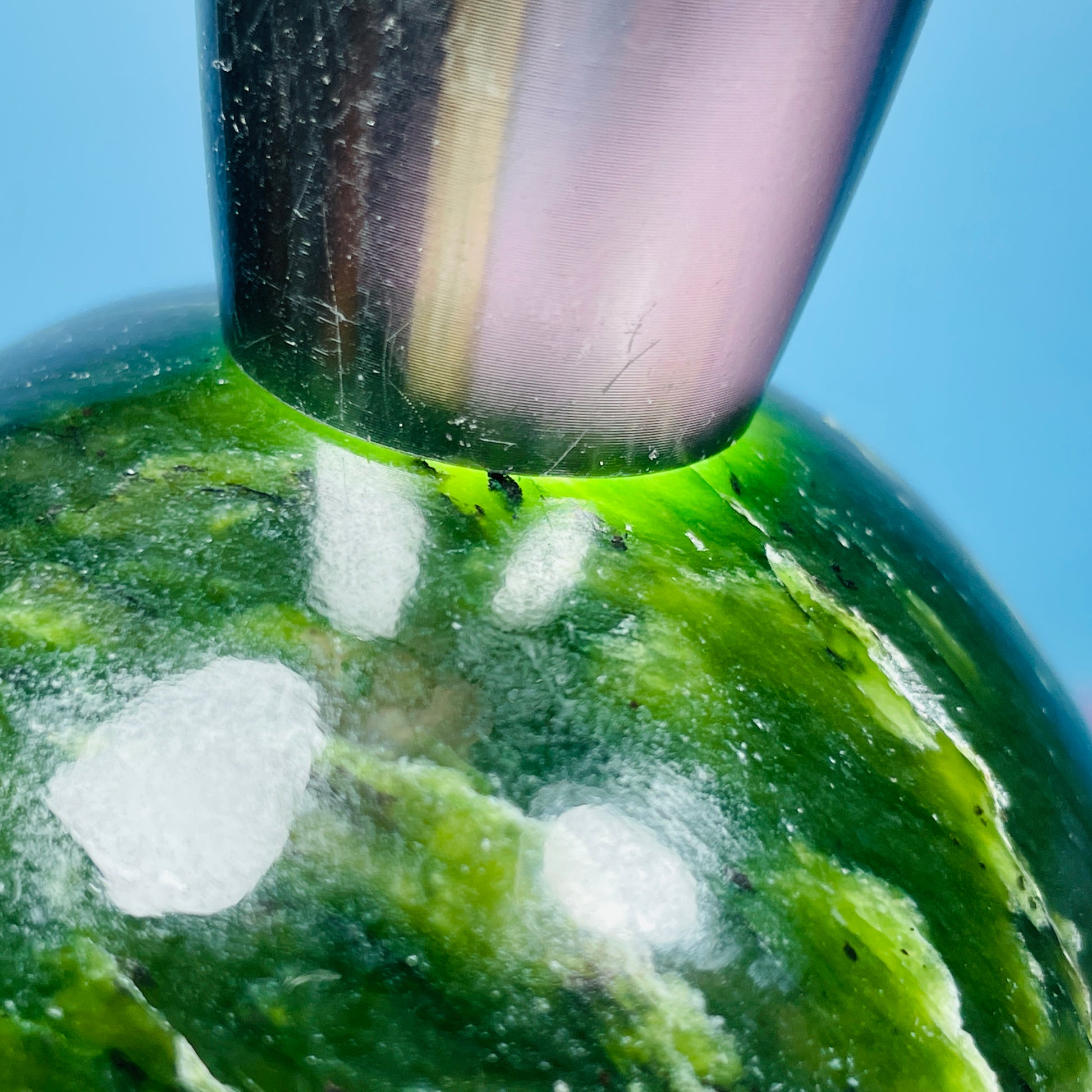 Swipe to see a video of our gem torch shining through the gorgeous Green Jade.
