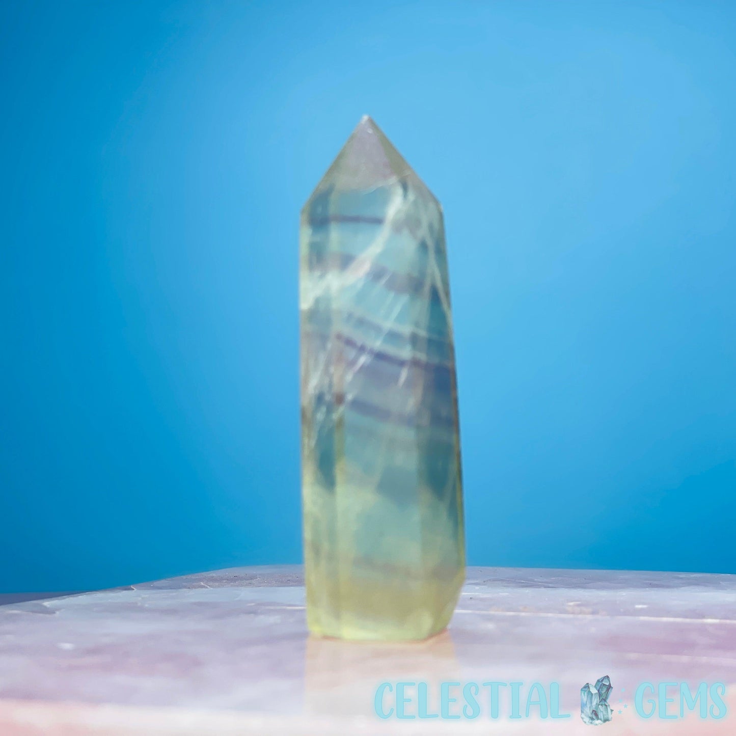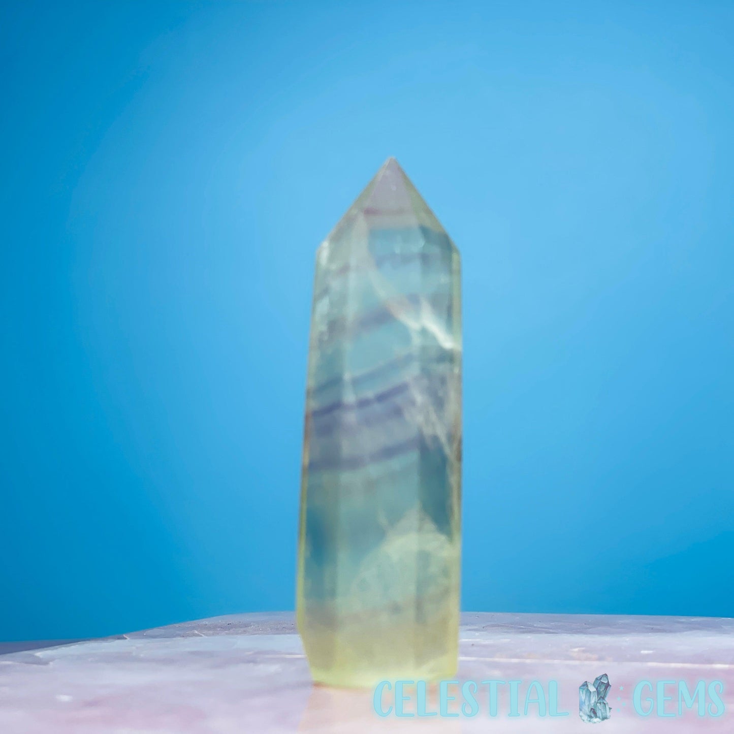 A striped and gorgeously translucent Fluorite with multi-coloured layers which can be pink, purple, yellow, green, blue and more, aptly named 'Candy' Fluorite. This material is UV reactive and some layers will glow bright blue/purple under a UV light.