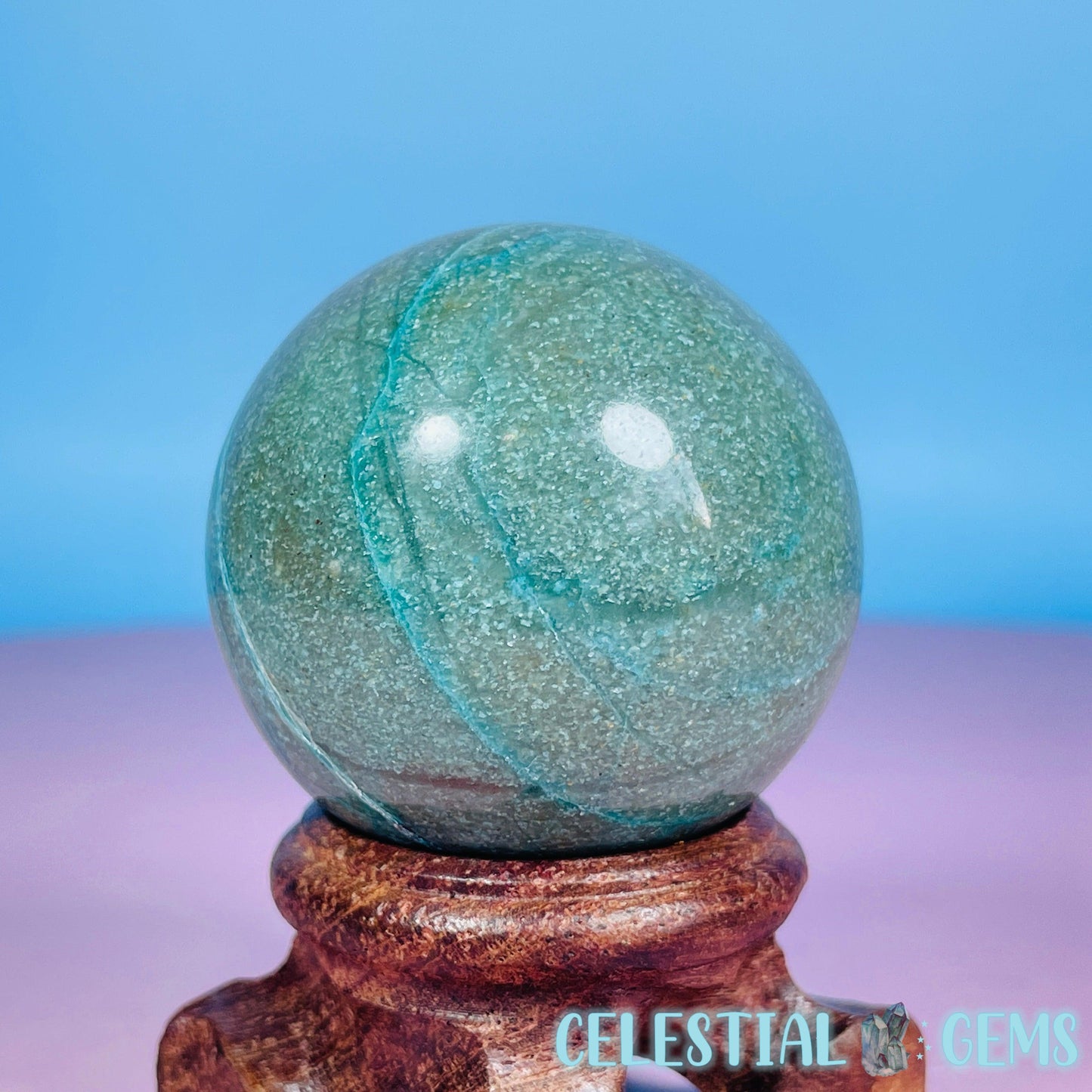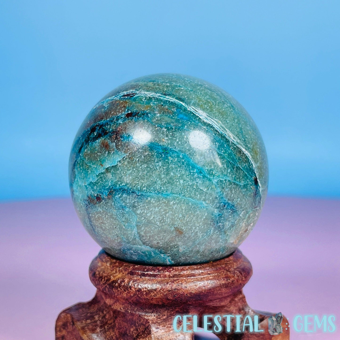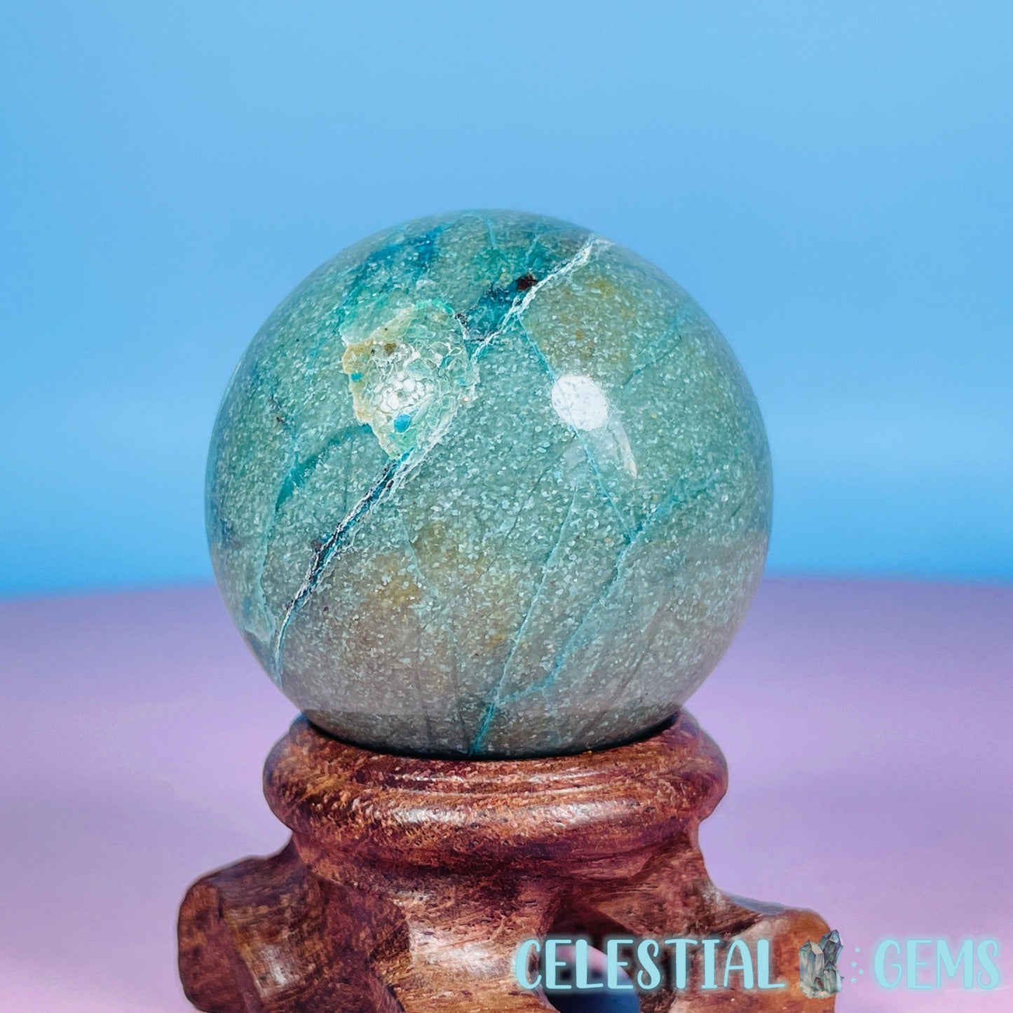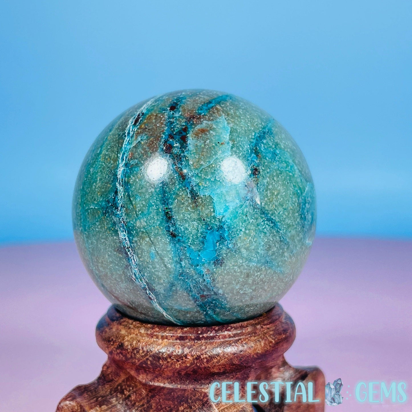 Beautiful dark blue Shattuckite inclusions within greeny/blue Chrysocolla with veins of gem Silica (silicified Chrysocolla). Approx. 4cm diameter. Stand sold separately.