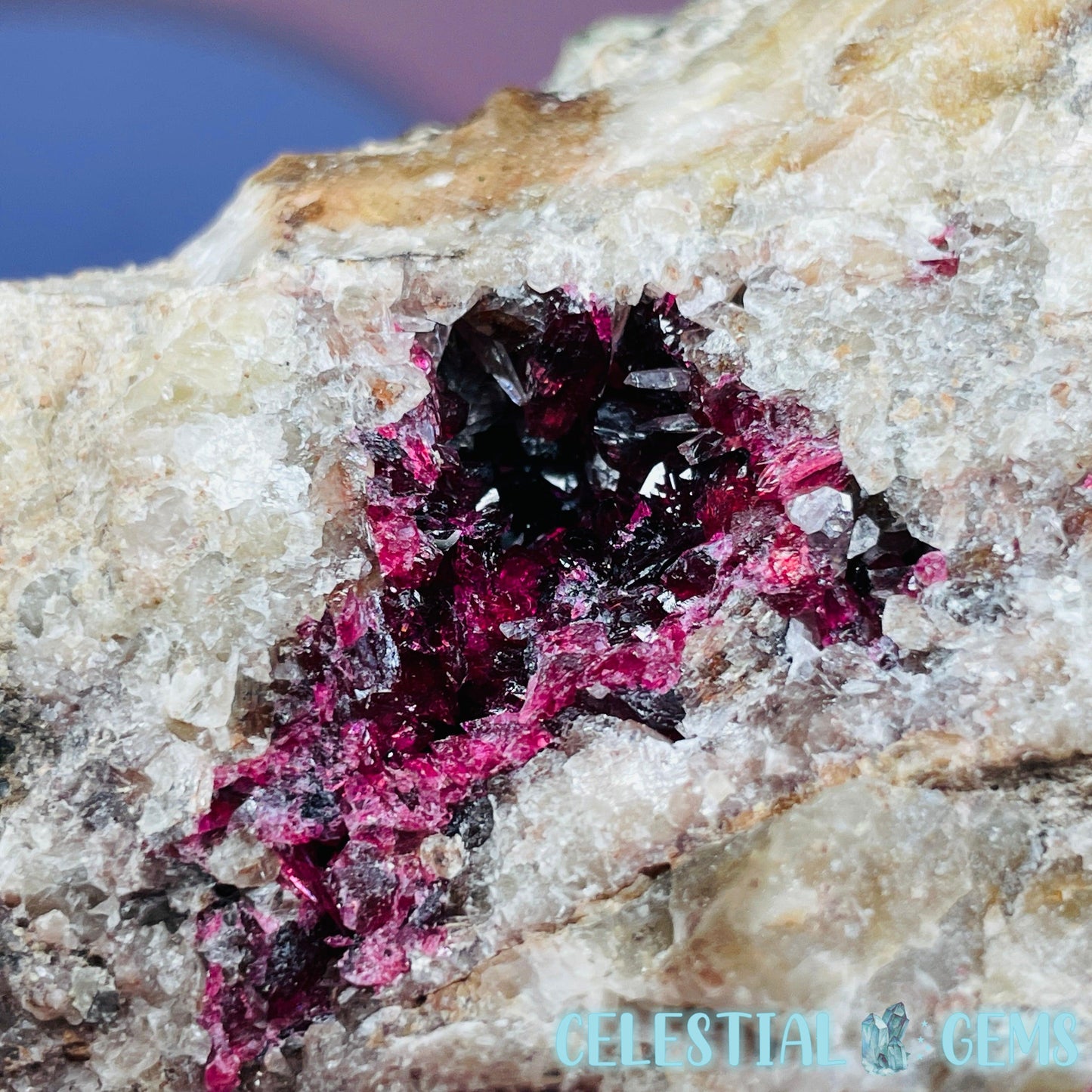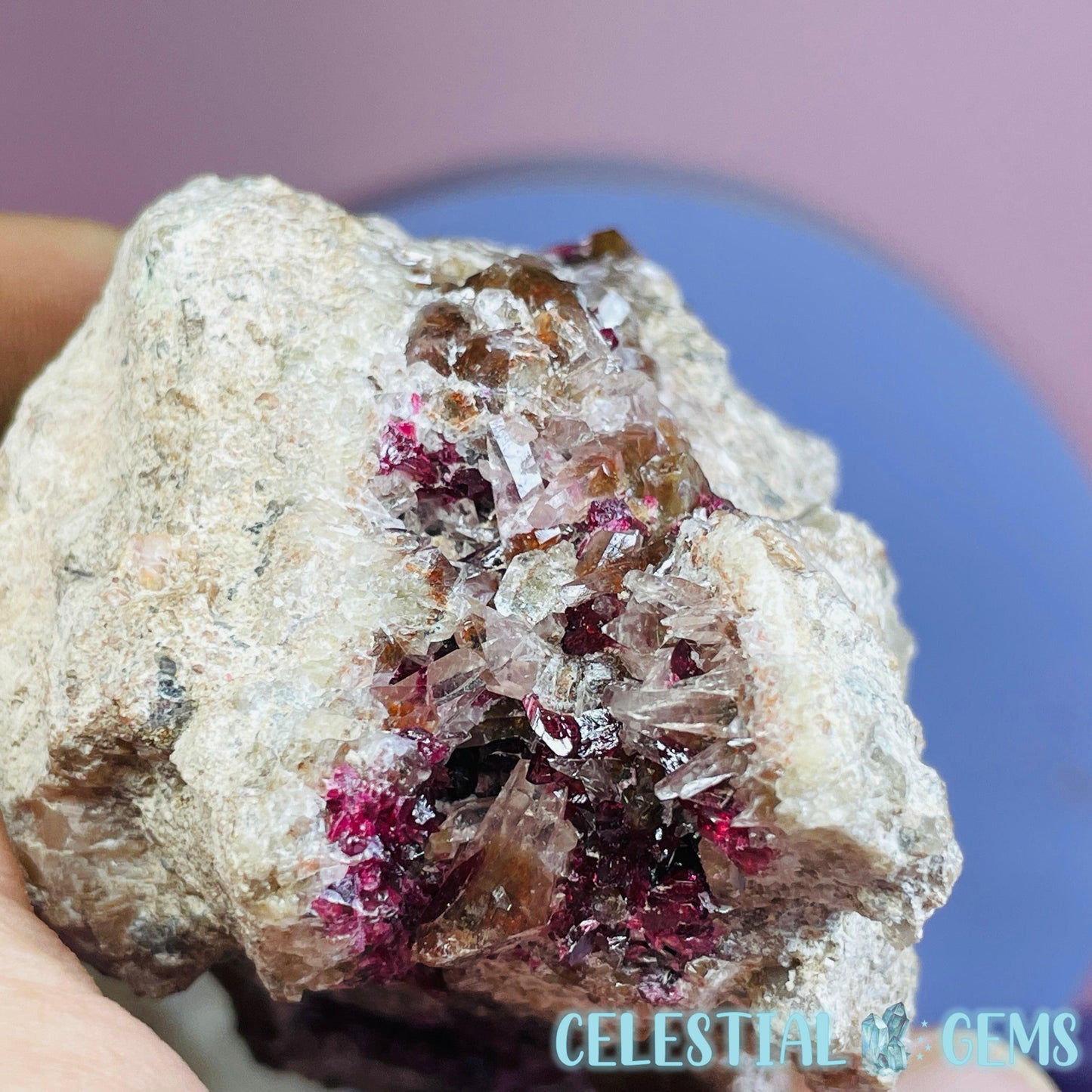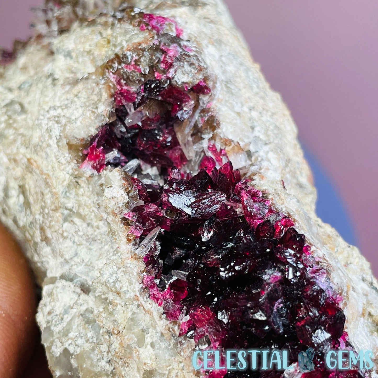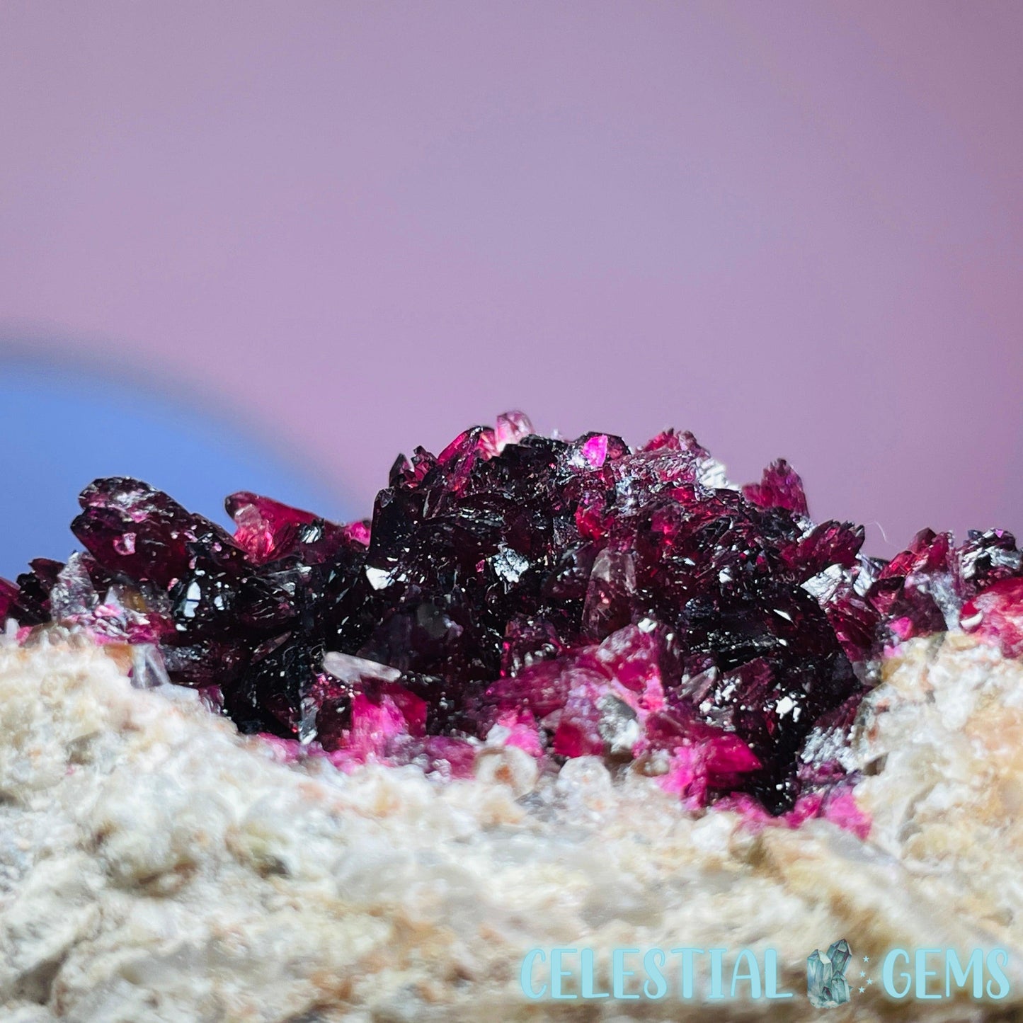 Roselite is an extremely rare pink-red cobalt mineral that sparsely occurs throughout the world and this piece has come from a lot was mined from the incredible Bou Azzer Mine, Morocco, which is famous for it's perfect crystallised Roselite deposits, among other beautiful minerals. Roselite sometimes occurs alongside Calcite crystals like in this piece.