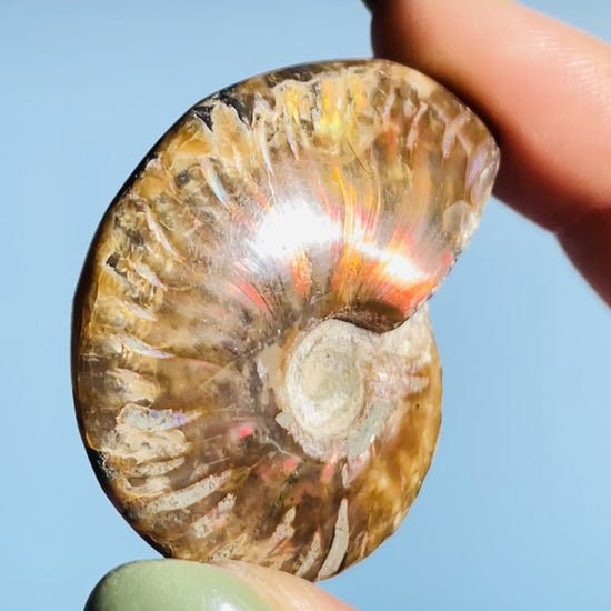 Flashy Ammonite Fossil Shell Small Specimen (Video)