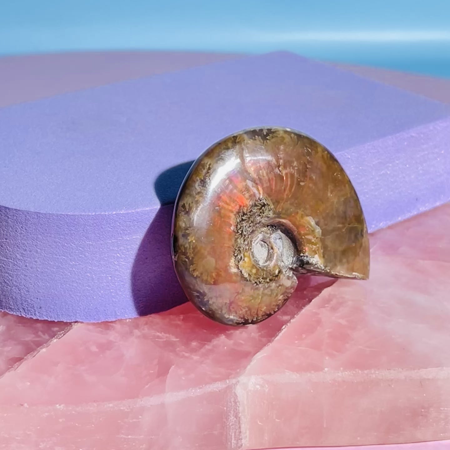Flashy Ammonite Fossil Shell Small Specimen (Video)
