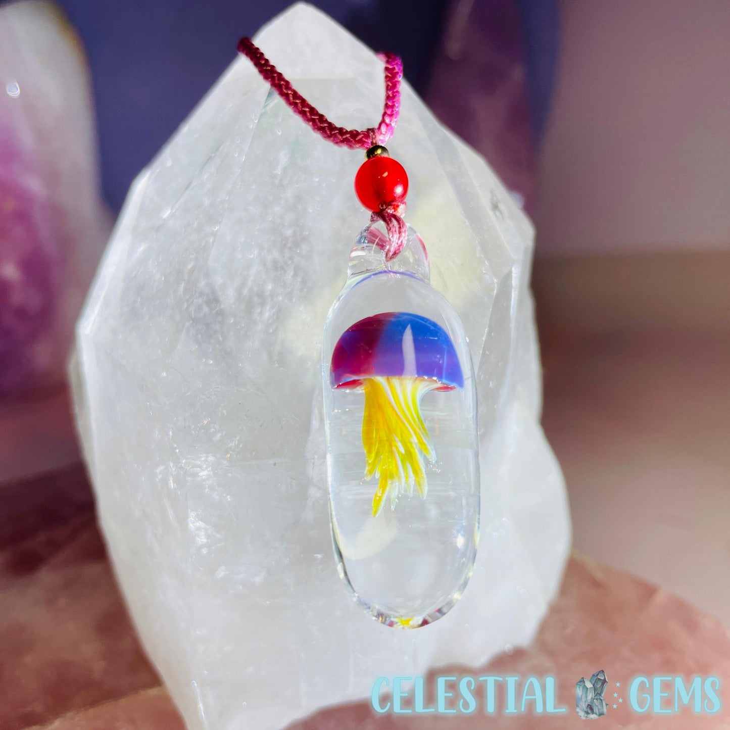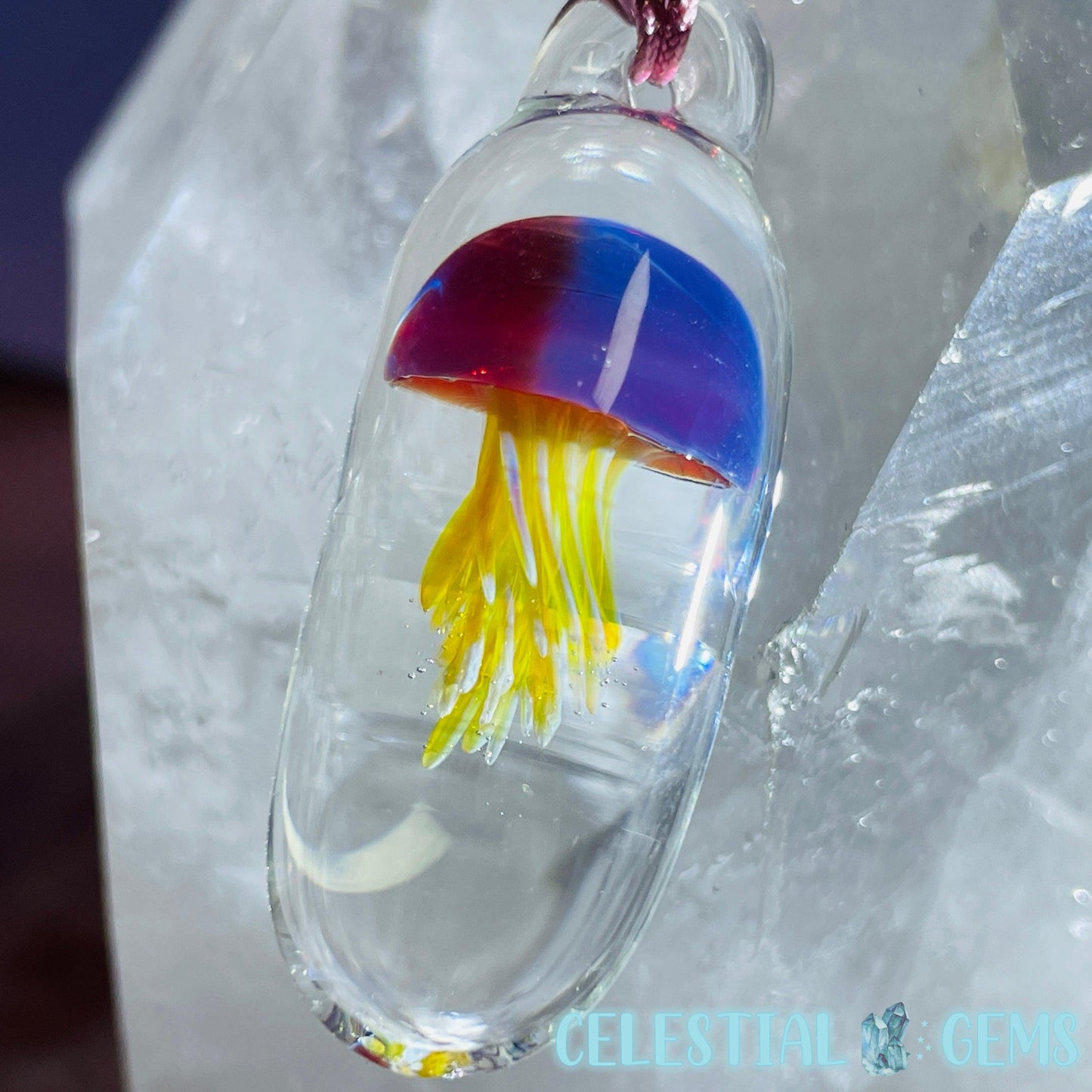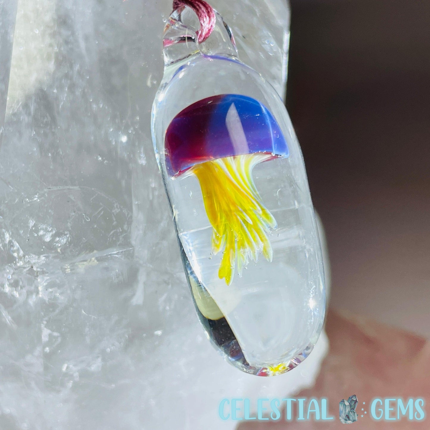 Cute little Jellyfish handmade cleverly from blown glass. Strung on a rope necklace. Pendant is approx. 4.2cm x 1.5cm.