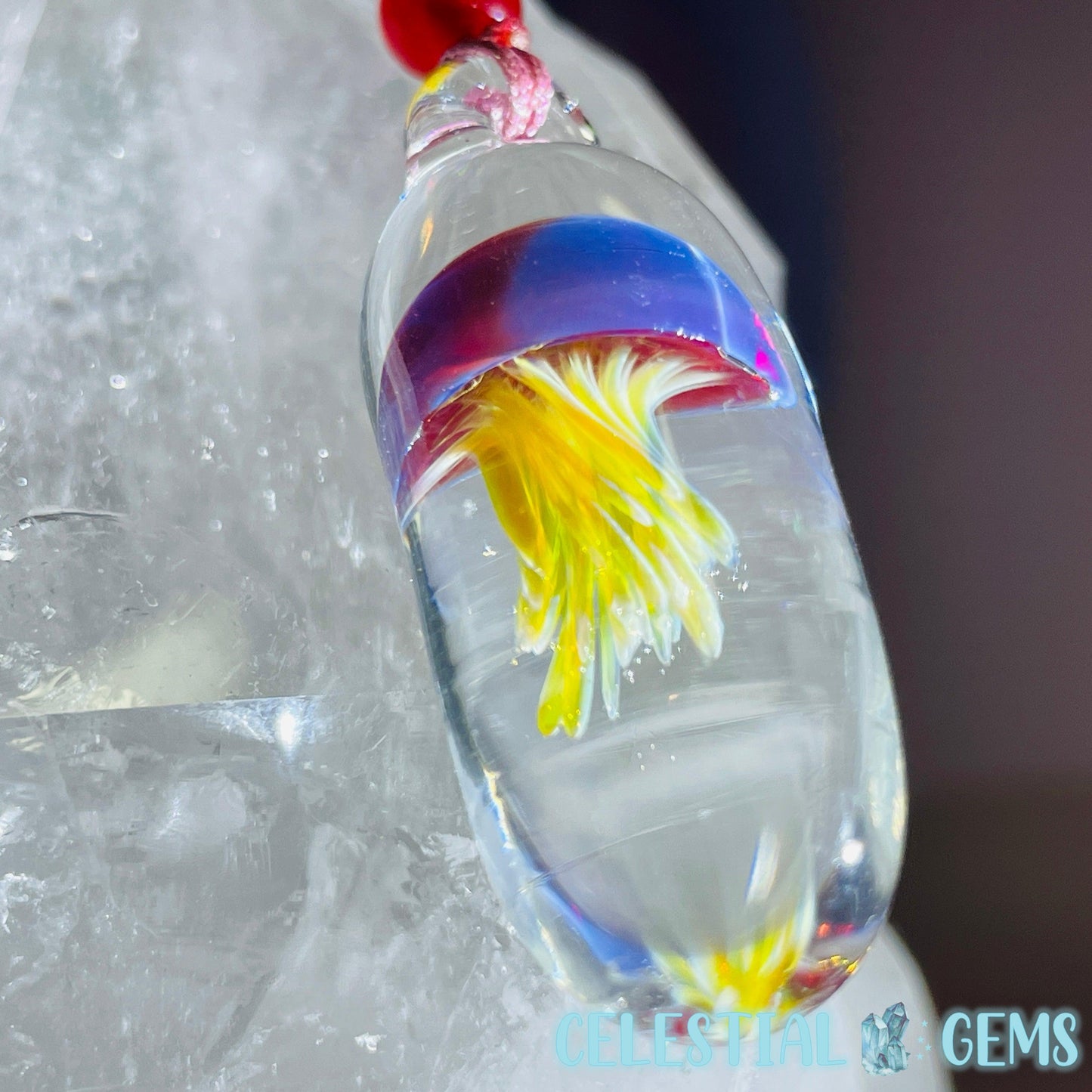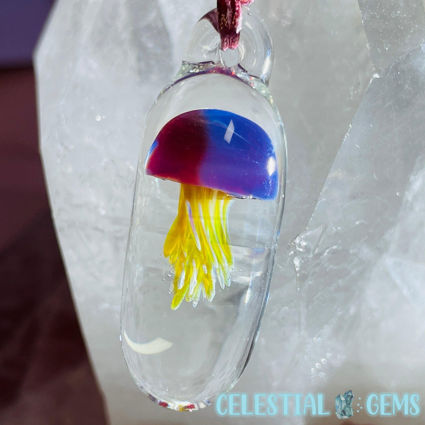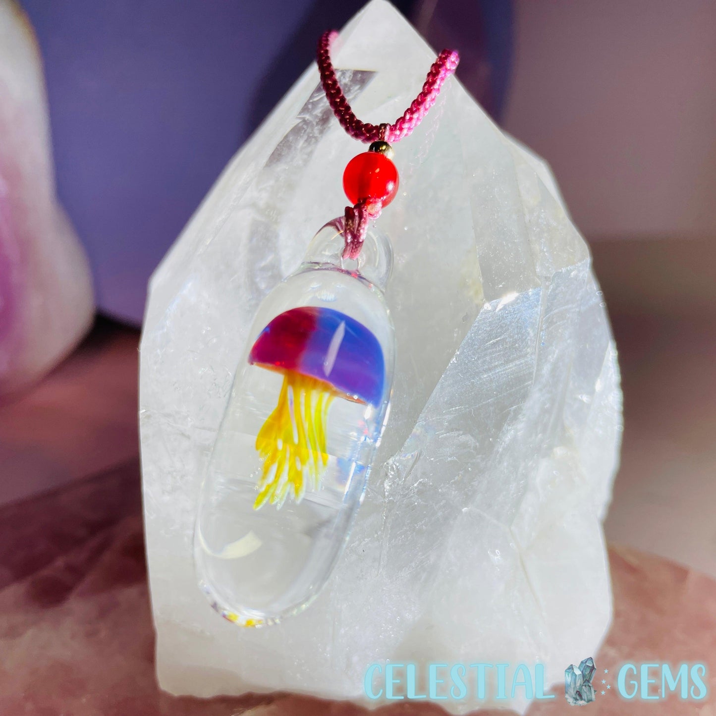 Cute little Jellyfish handmade cleverly from blown glass. Strung on a rope necklace. Pendant is approx. 4.2cm x 1.5cm.