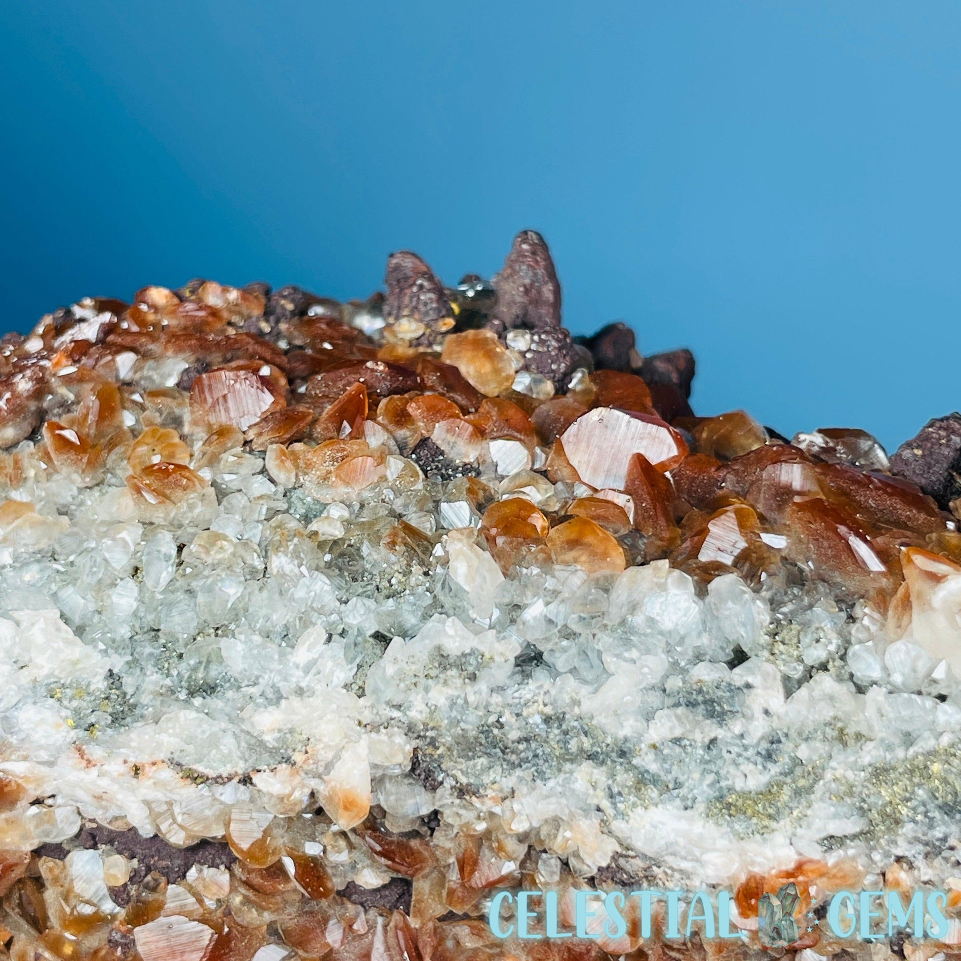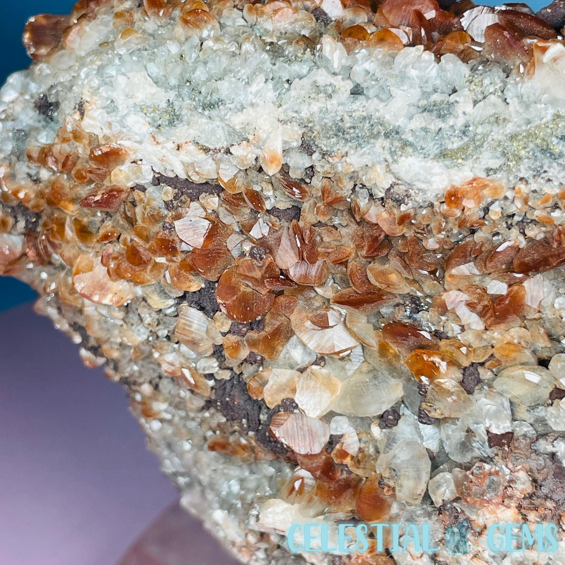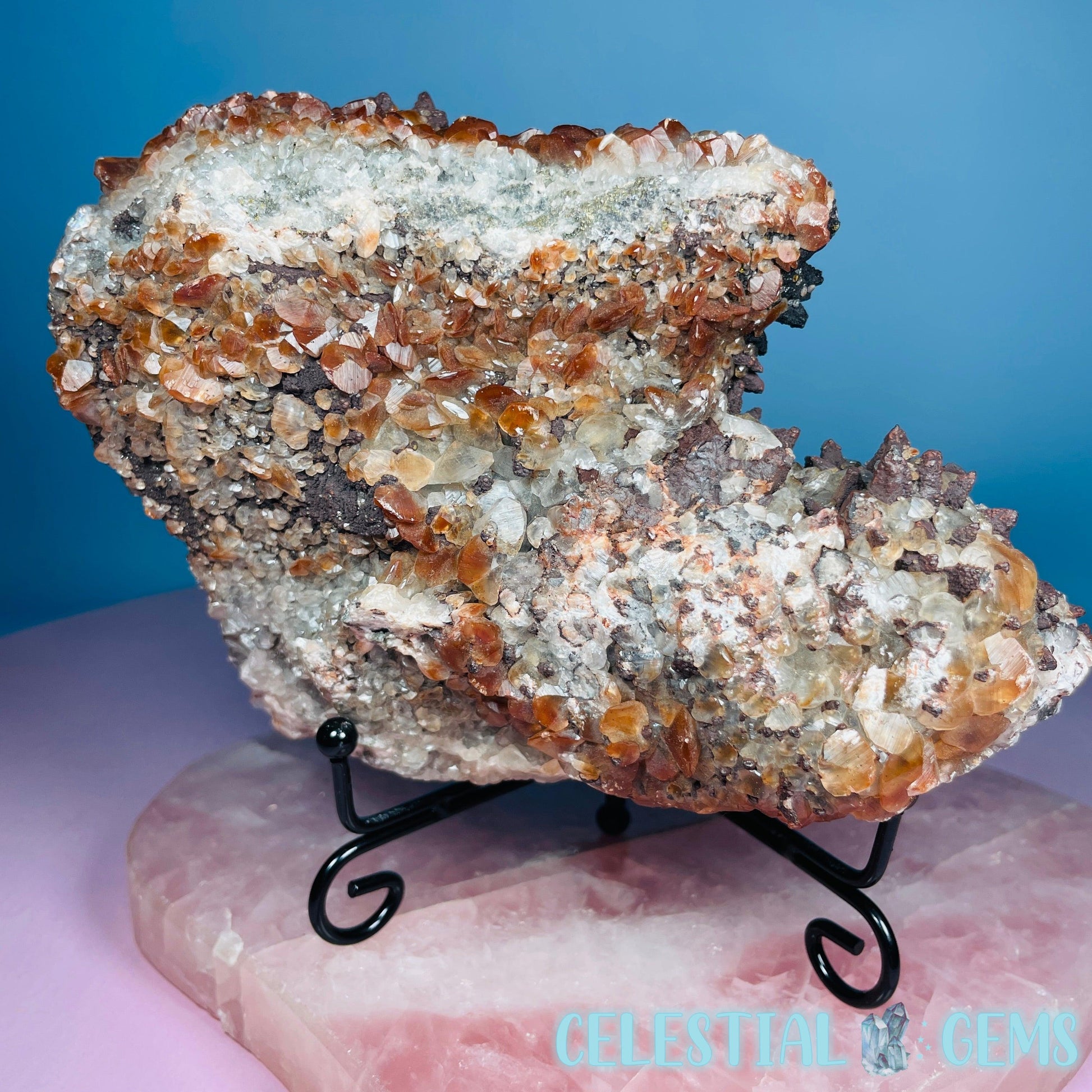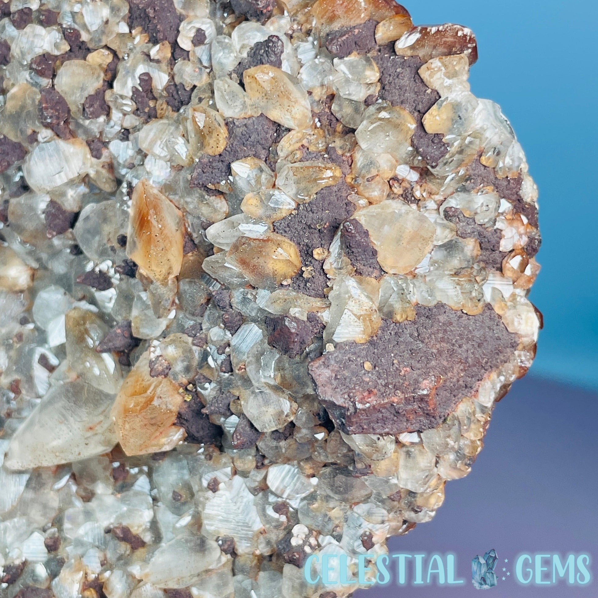 A cluster of Pagoda Calcite that has been stained red from Hematite inclusions all over this piece. Crystals are present on both sides of this specimen. Approx. 14.2cm x 10.5cm x 4.2cm.
