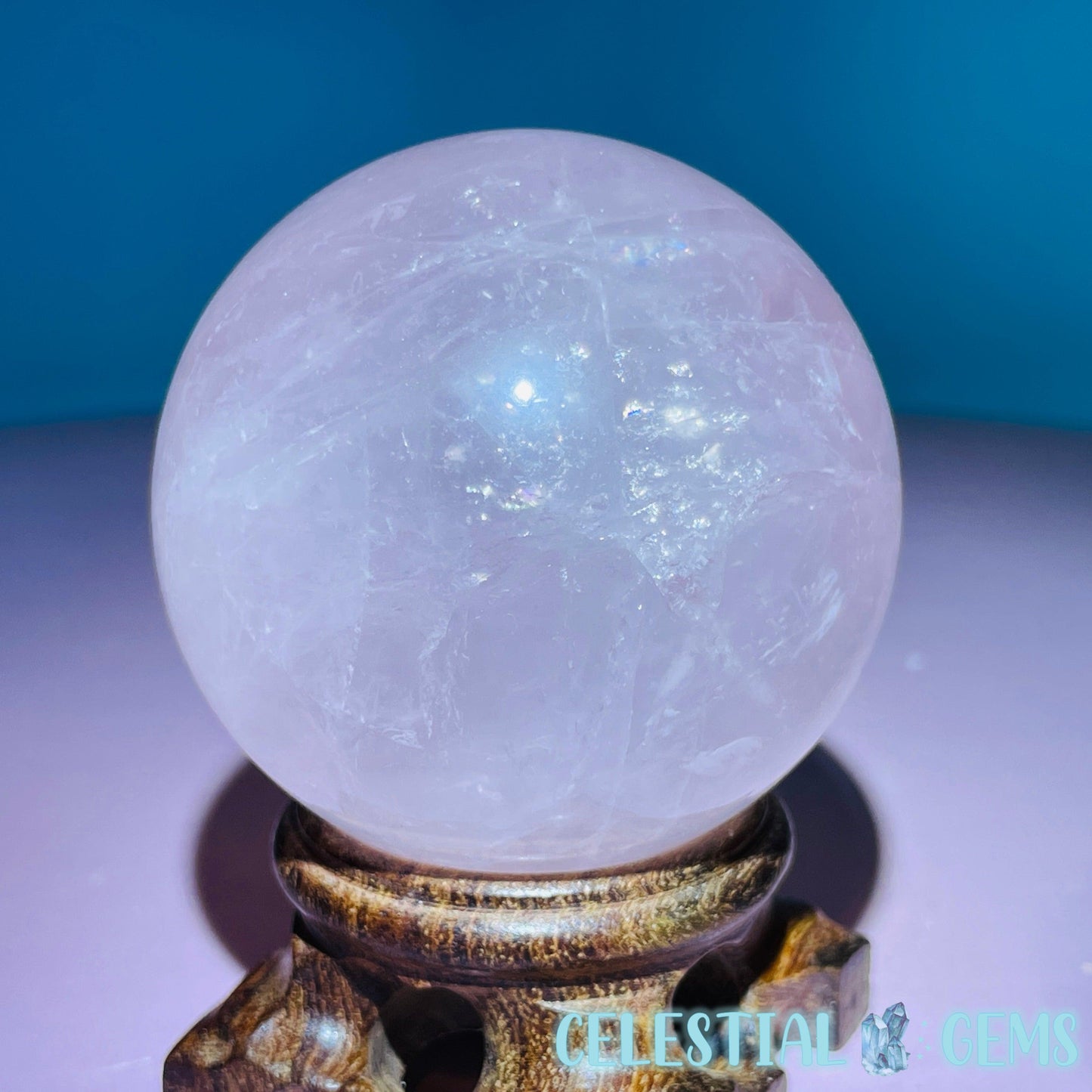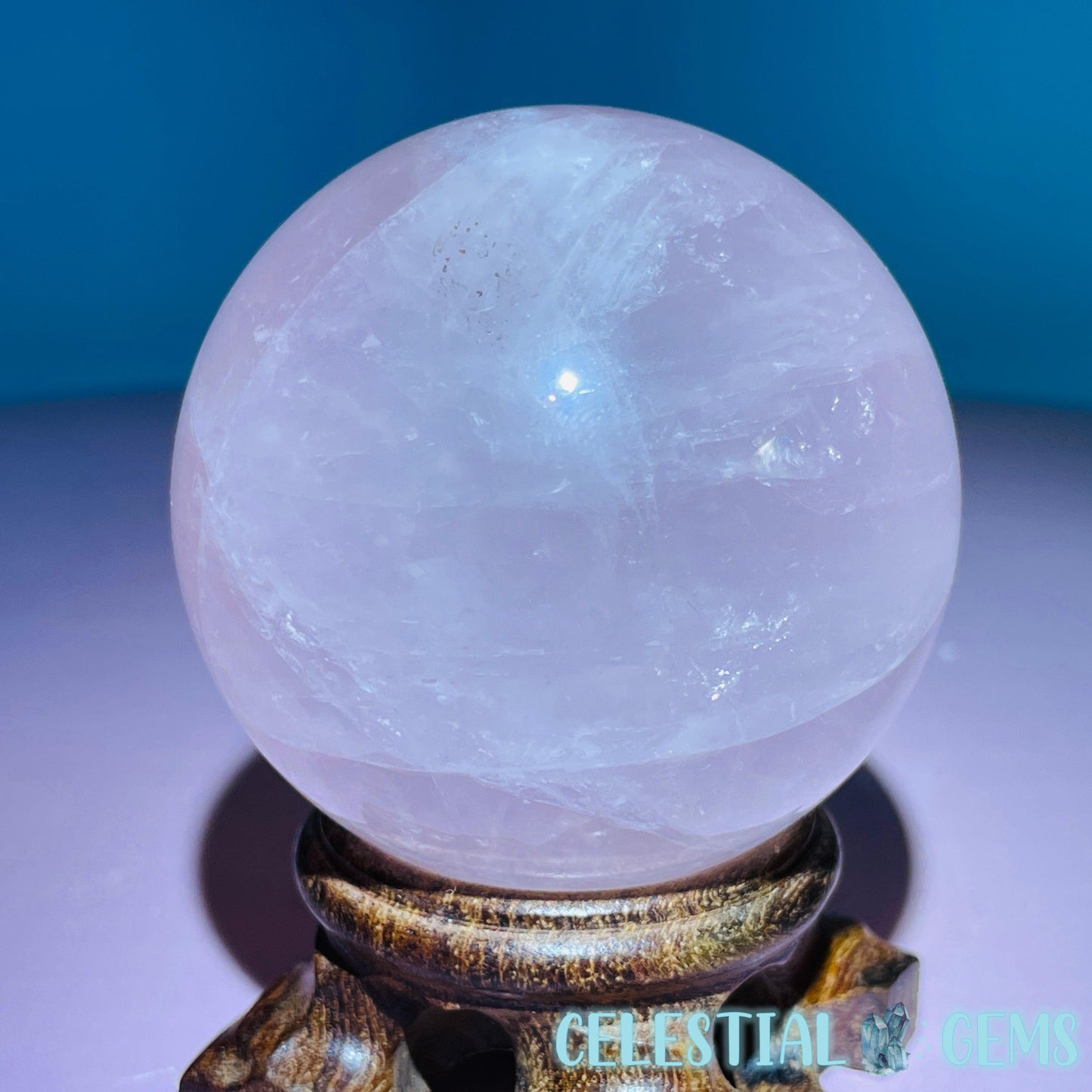 A beautiful soft pink Rose Quartz sphere of excellent quality with an incredible star flash when shown with some added light. Sourced from Madagascar. Swipe to see a video of the star flashes.