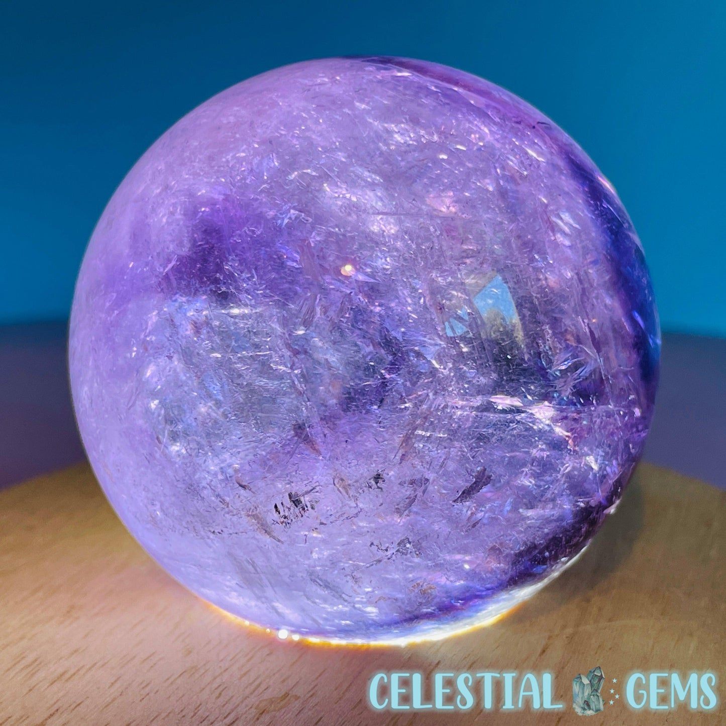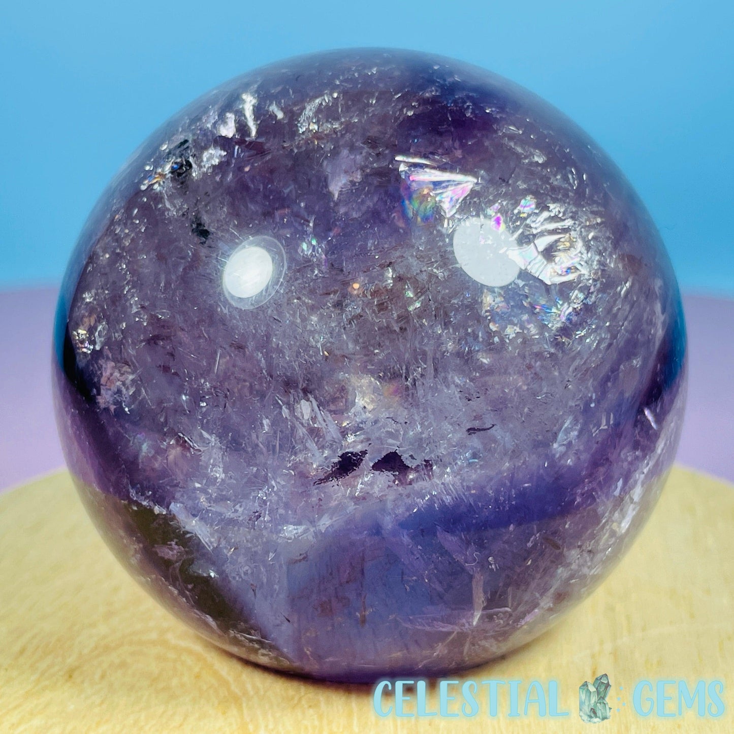 Our Trapiche Amethyst spheres have incredible dark phantom lines and star patterns, very clear windows, lots of silvery flashes and some bright rainbows within. Swipe to see a video.