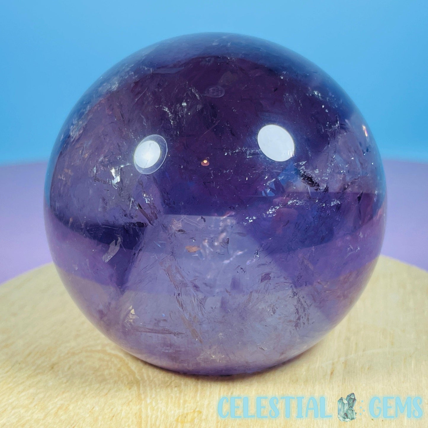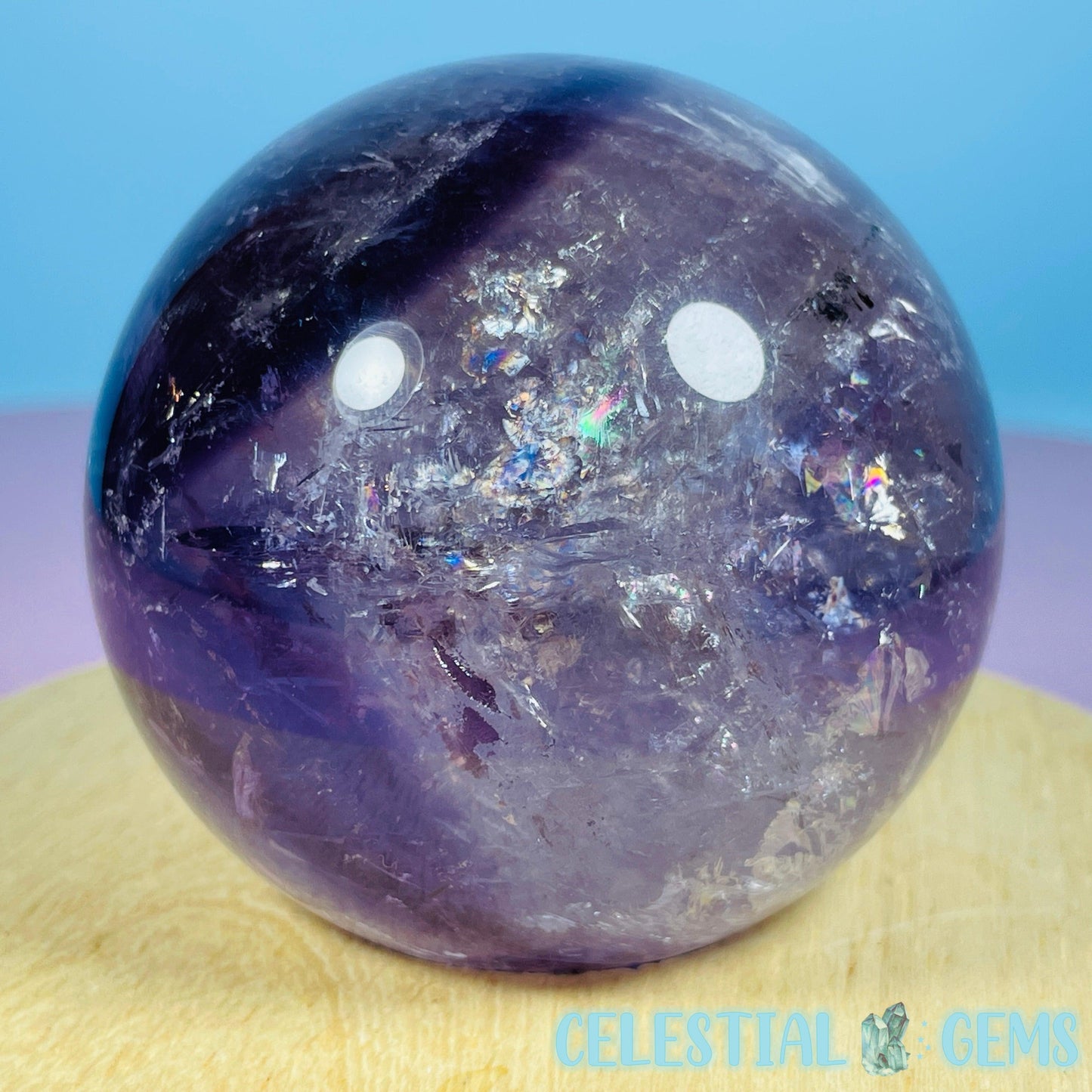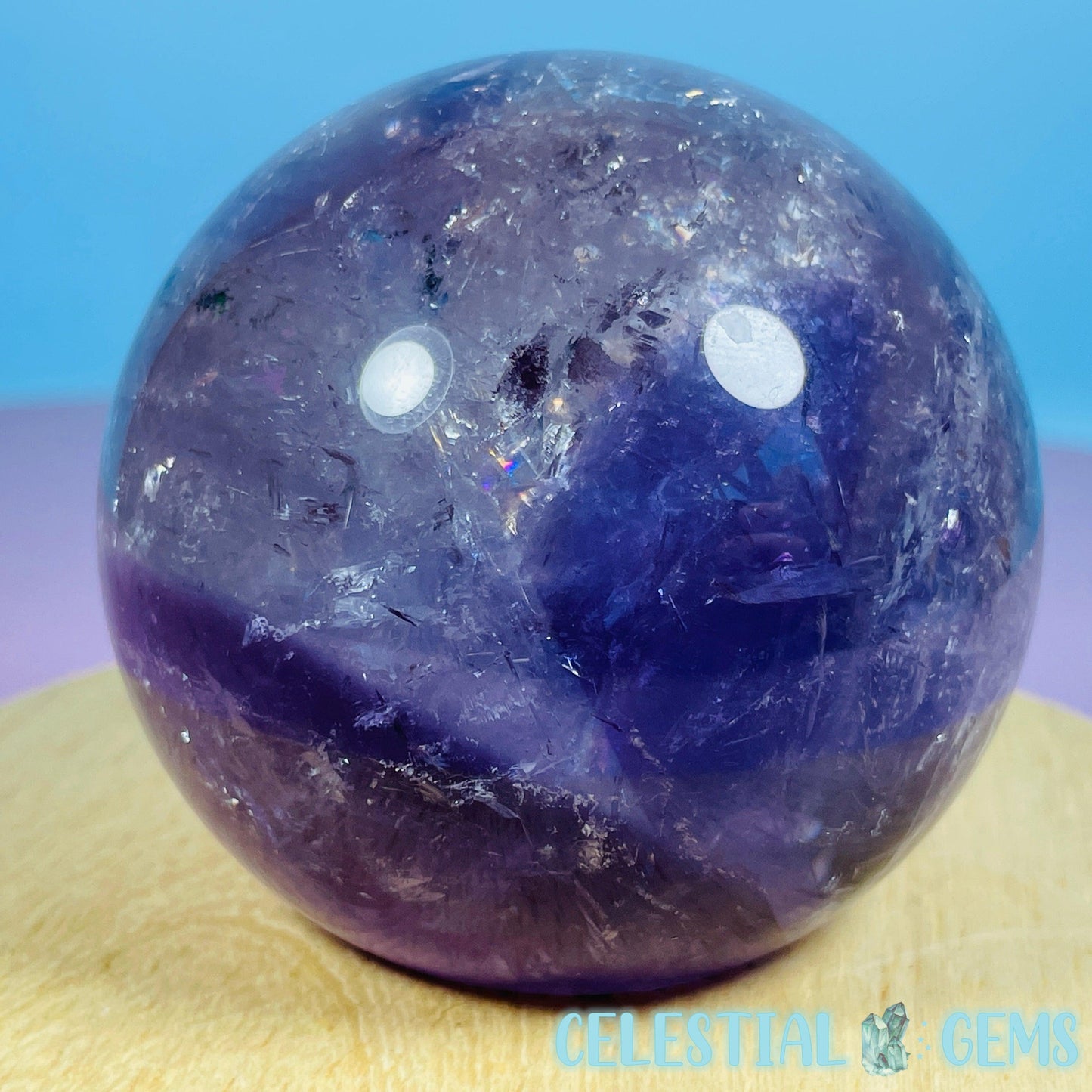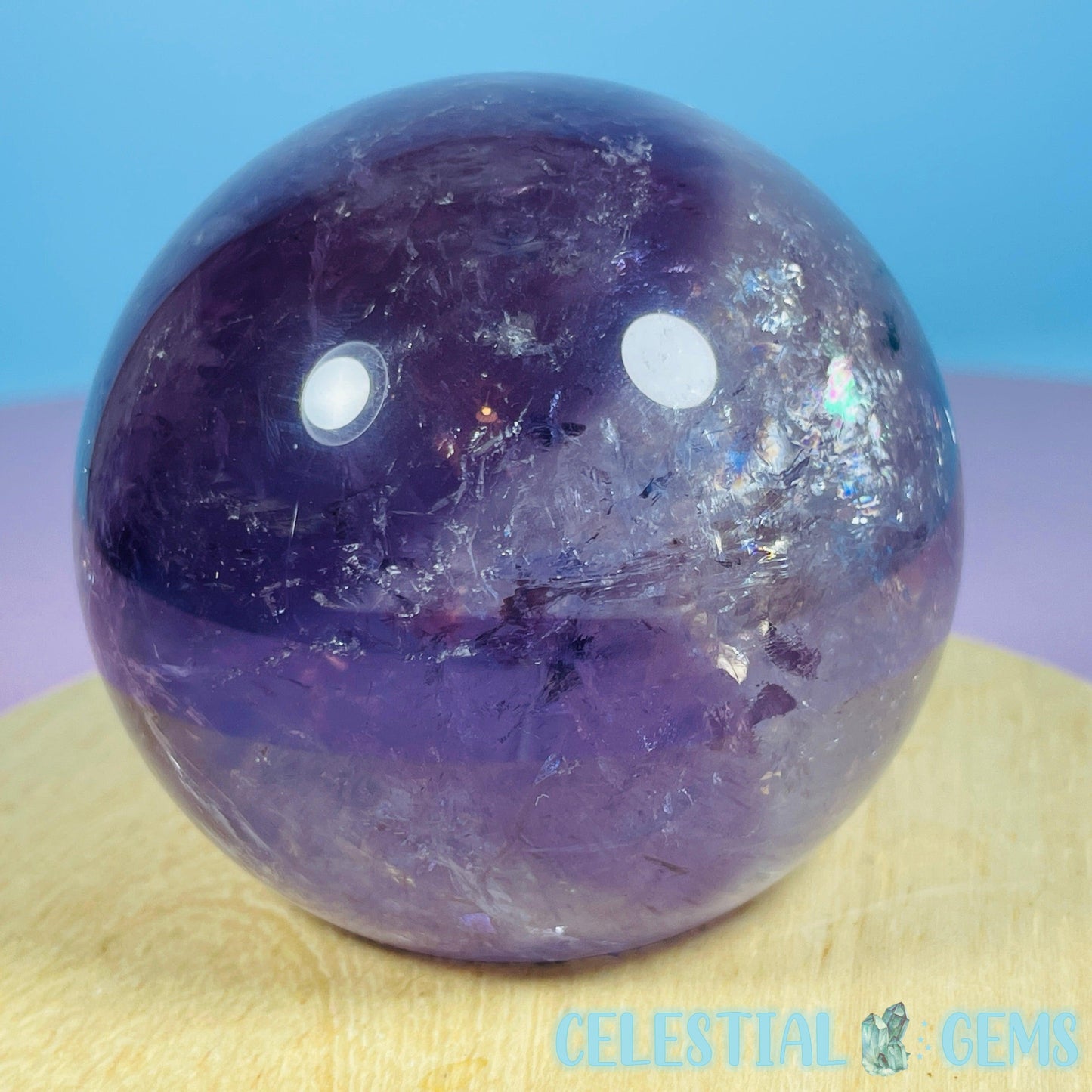 Approx. 5.8cm diameter. Comes with a free wooden sphere stand. Pictured on a light base to show its internal colour.