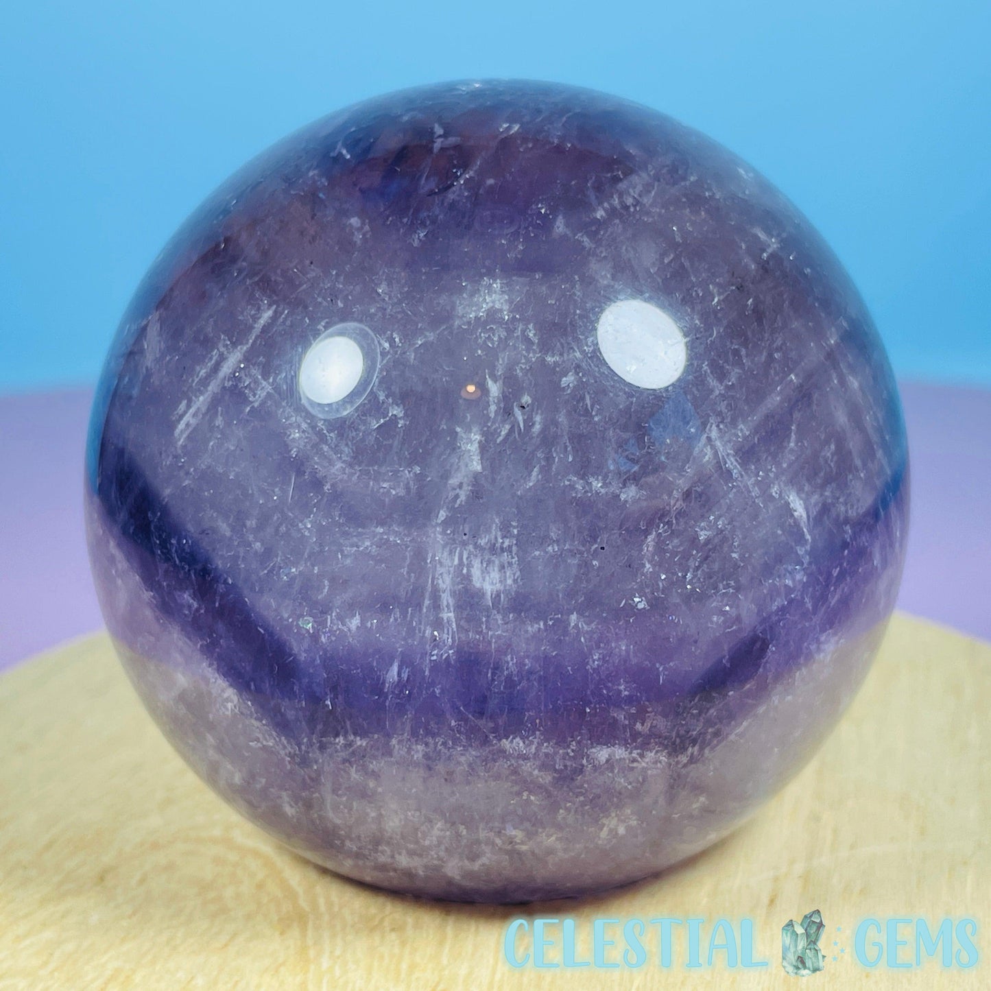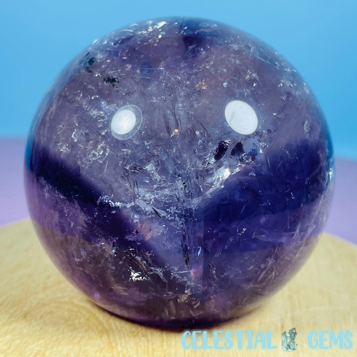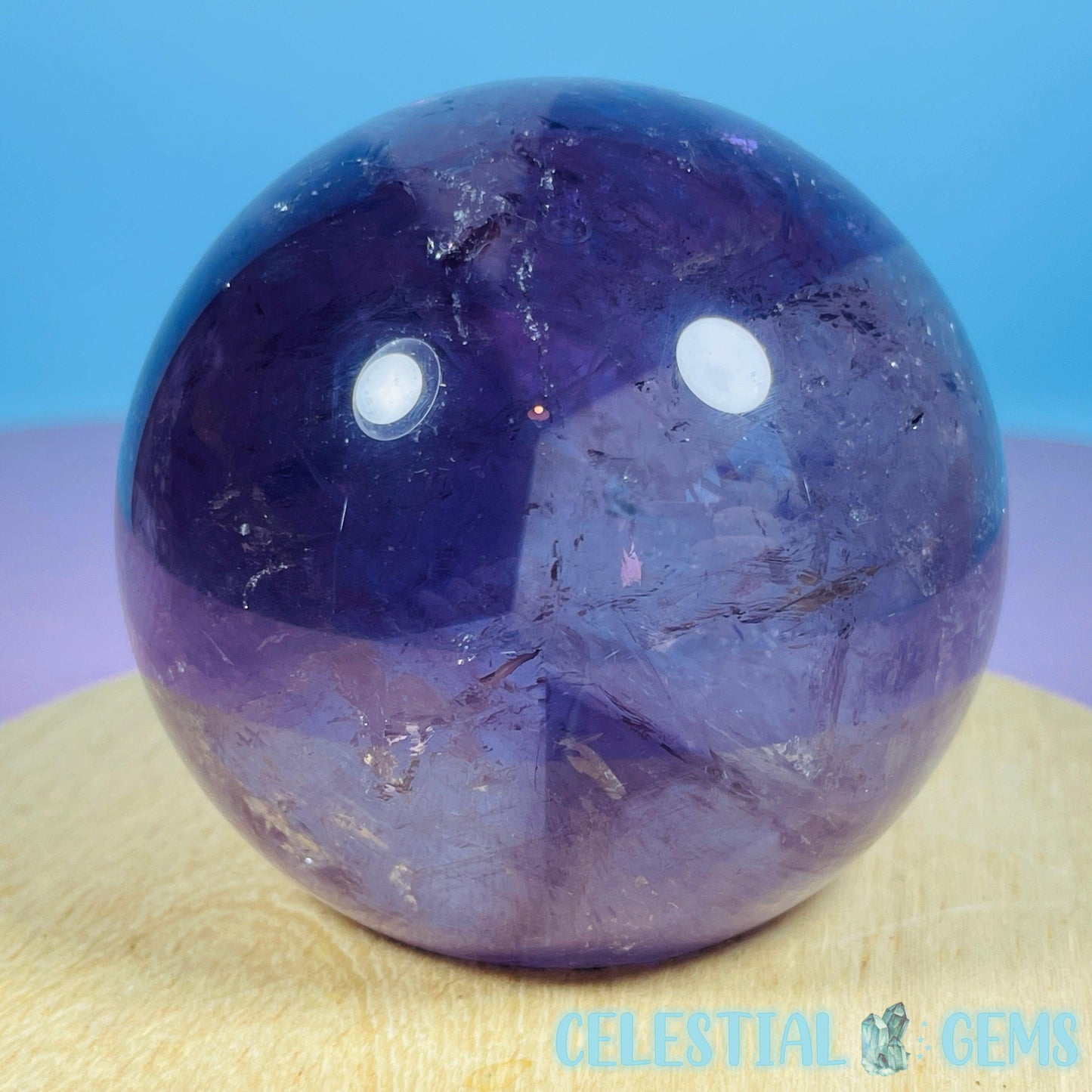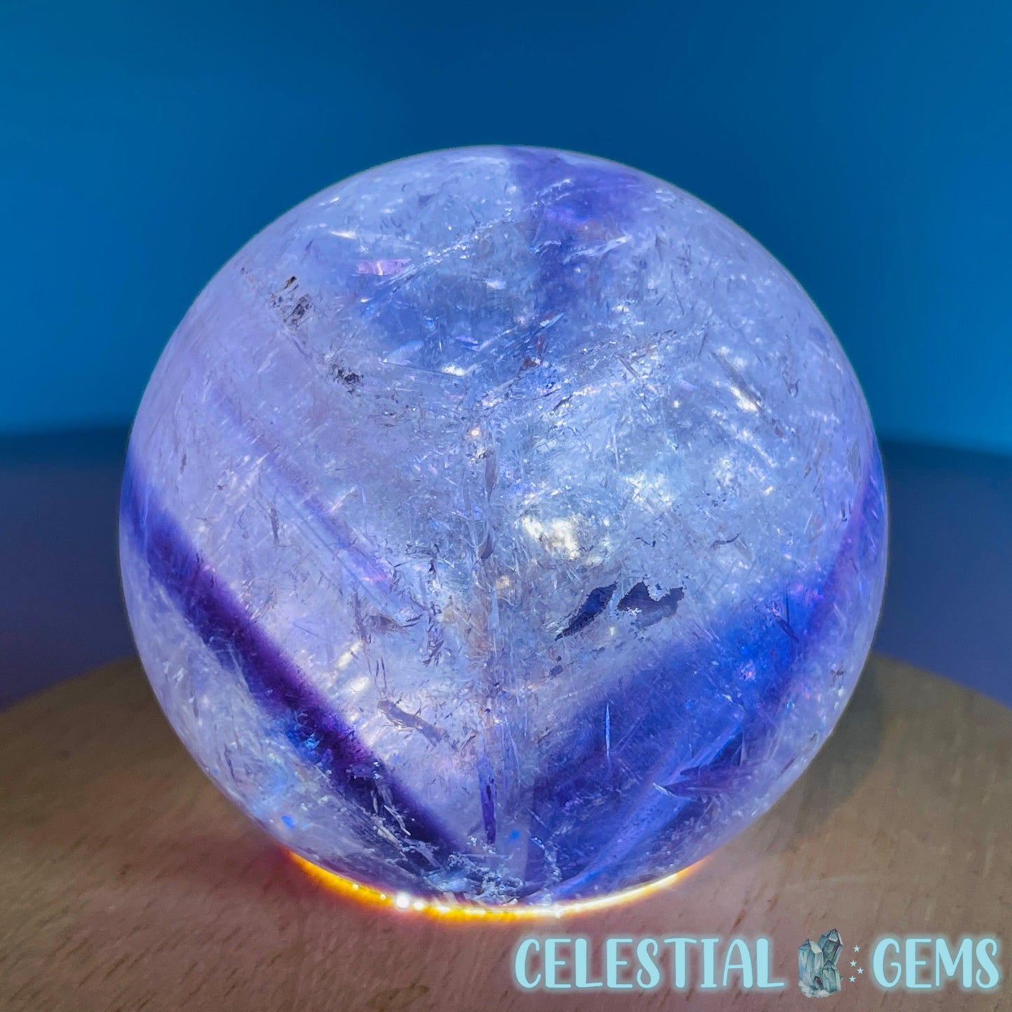 Approx. 5.8cm diameter. Comes with a free wooden sphere stand. Pictured on a light base to show its internal colour.
