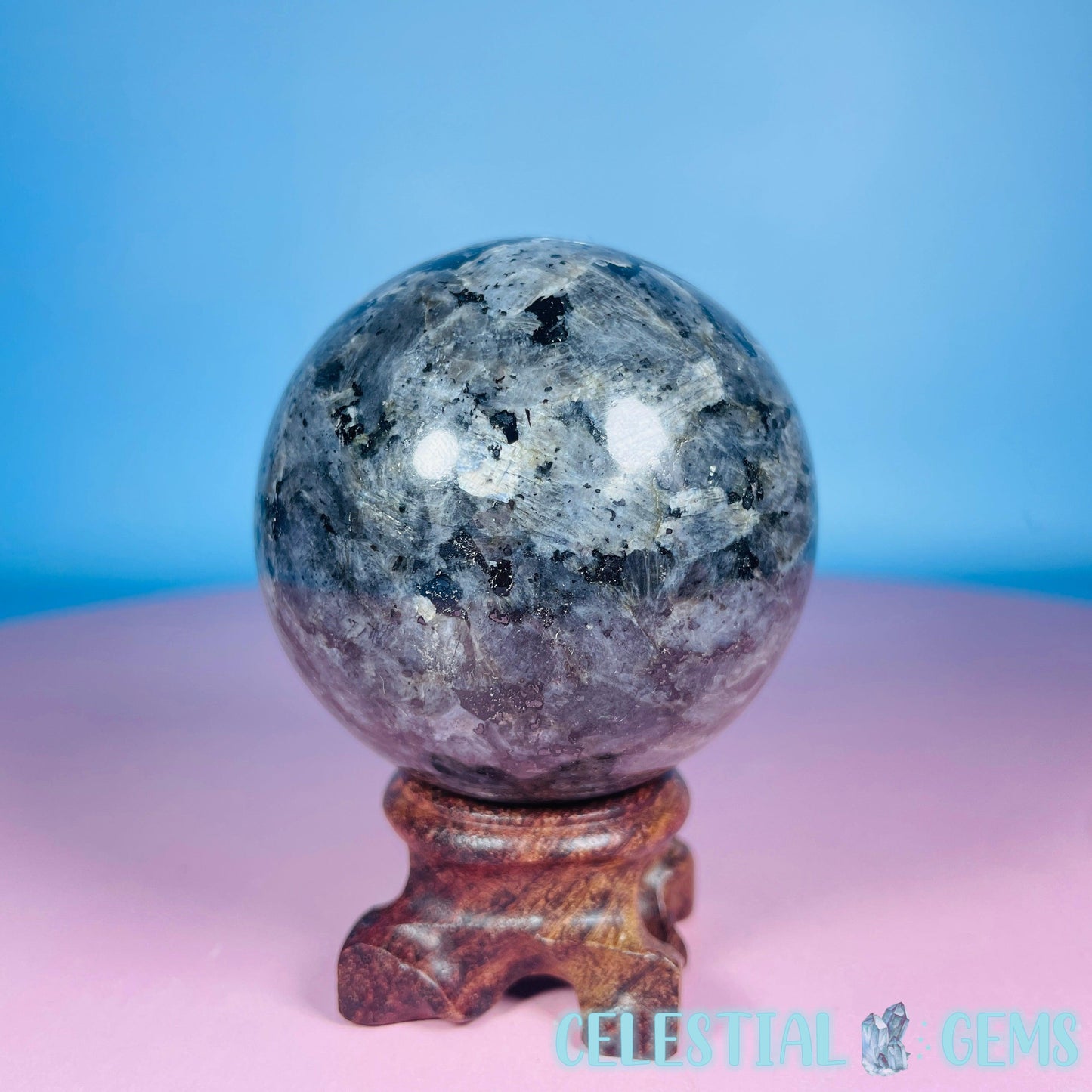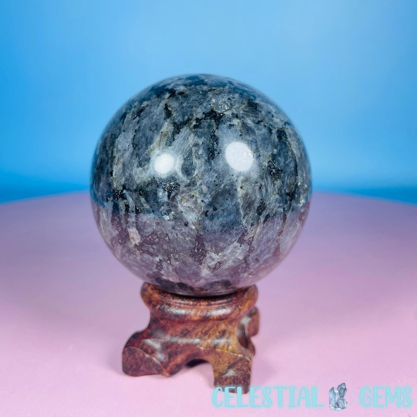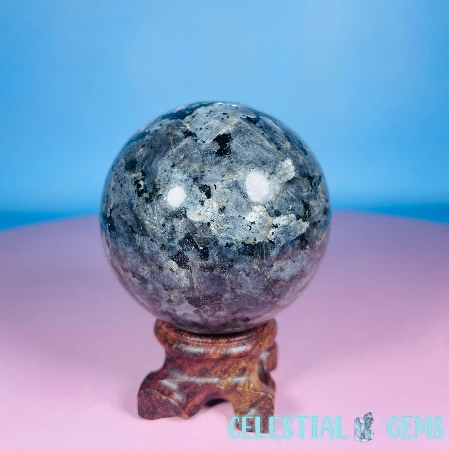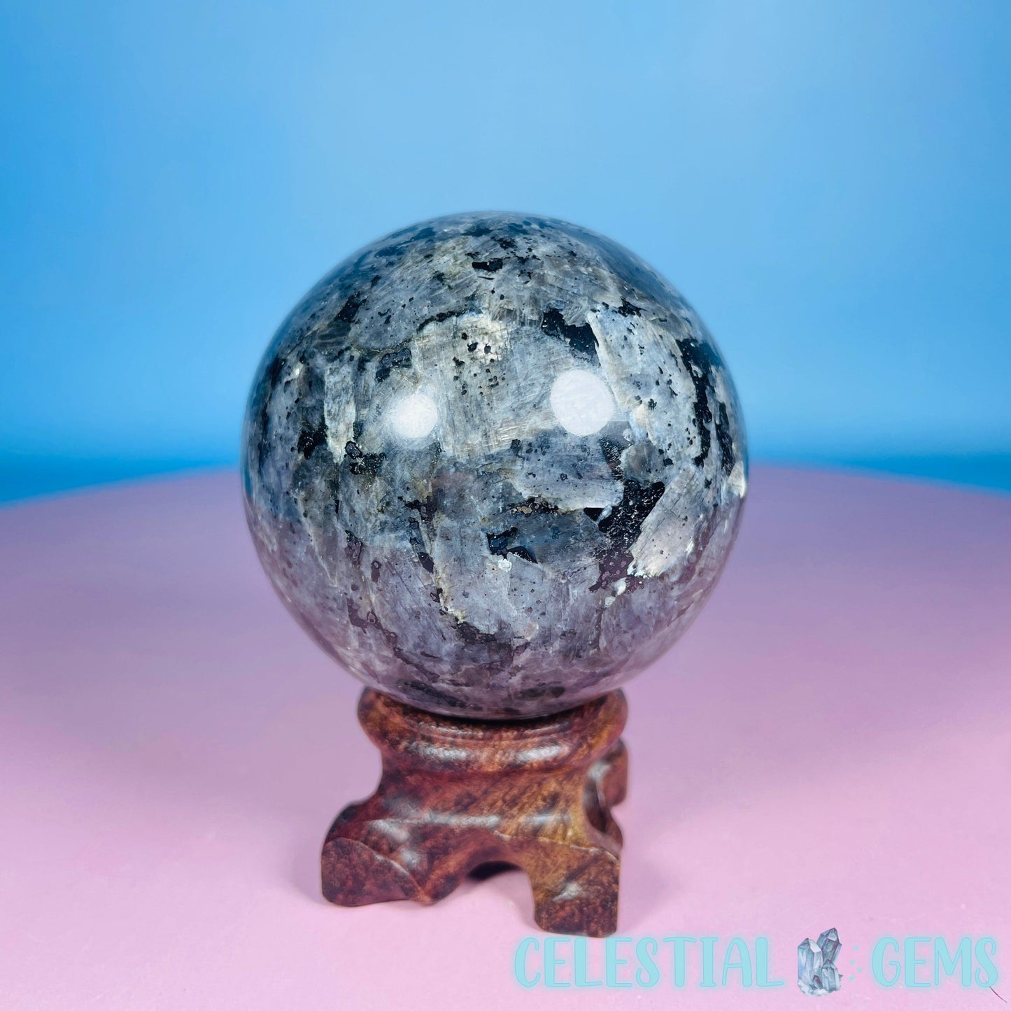 Flashy Larvikite with silver flashes. Approx. 5.9cm diameter. Weight 307g. Sphere stand sold separately.