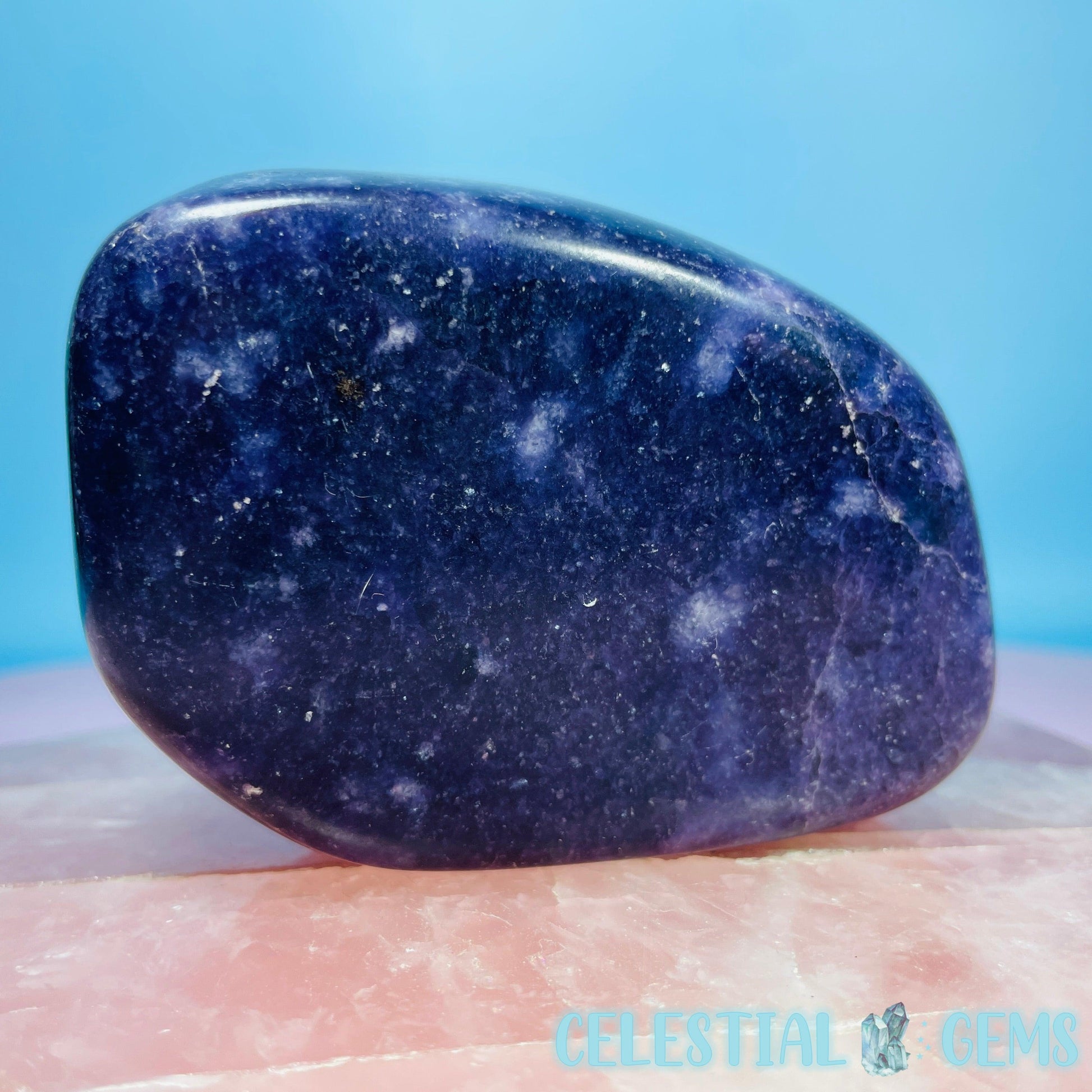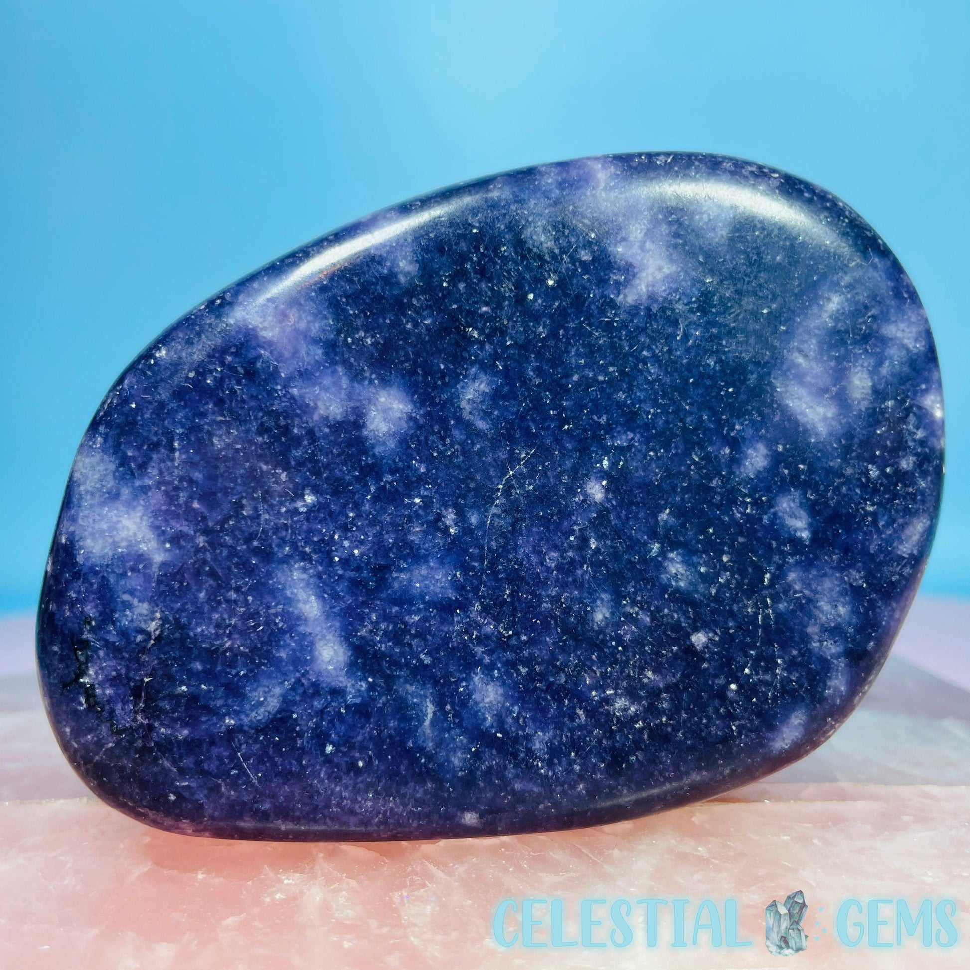 Gorgeous sparkly polished Lepidolite (Purple Mica) medium sized freeform with white Albite inclusions.