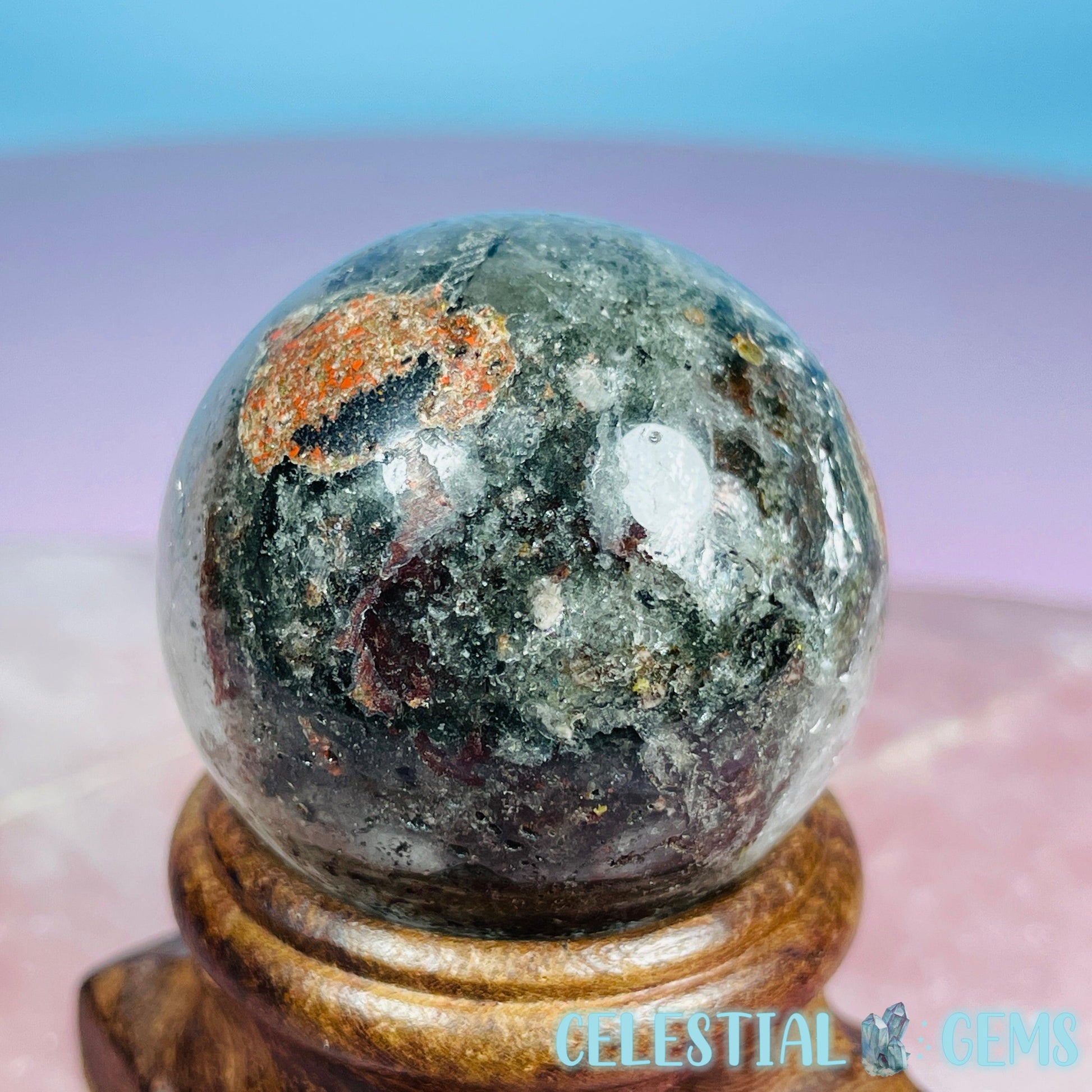 Garden Quartz, AKA Lodolite, with inclusions of all sorts of minerals with different colours and textures within Clear Quartz, displaying a scenic 'Garden' shown through a clear Quartz window. Approx. 3.5cm diameter. Stand sold separately.