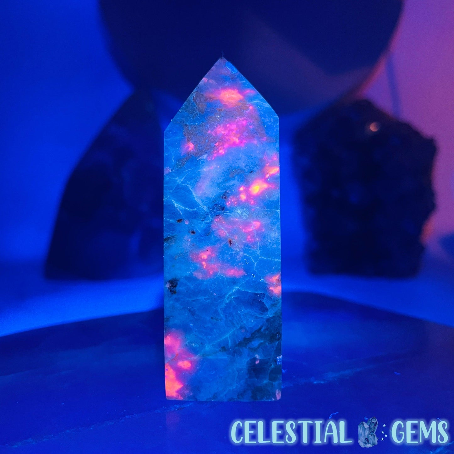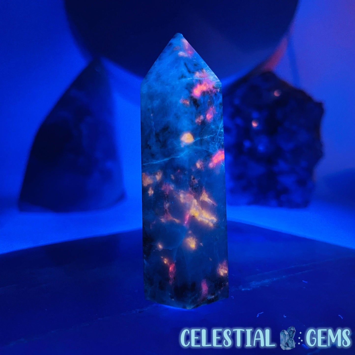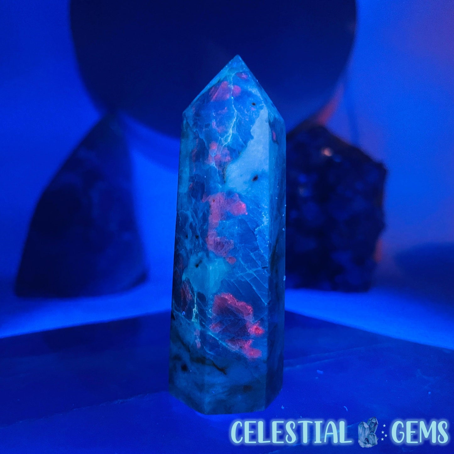 Measurements below. Sold individually. Please select which piece you wish to purchase from the style number below. Hackmanite has a unique UV reaction called 'Tenebrescence' and will glow bright orange/pink/yellow under a UV light.