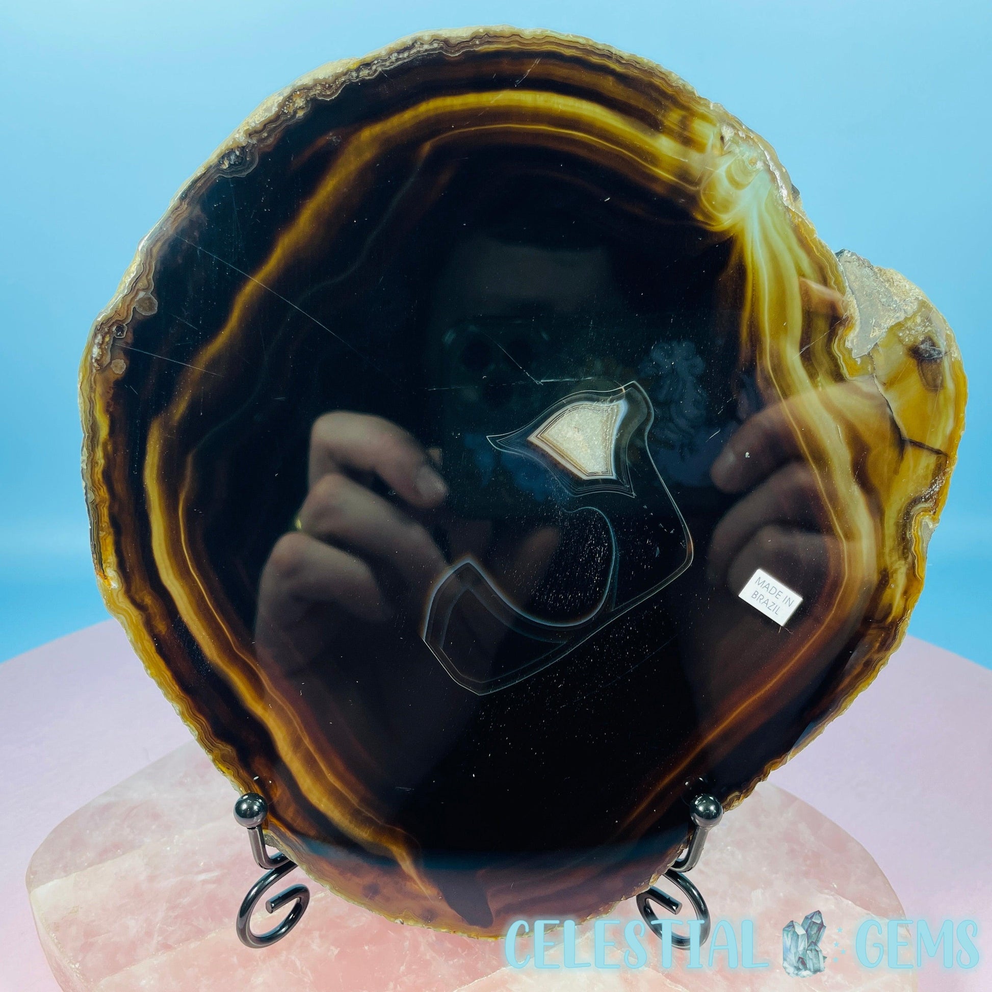 A large slice of an Agate crystal cut thinly with excellent translucency, patterns and colours. This is a natural Agate.