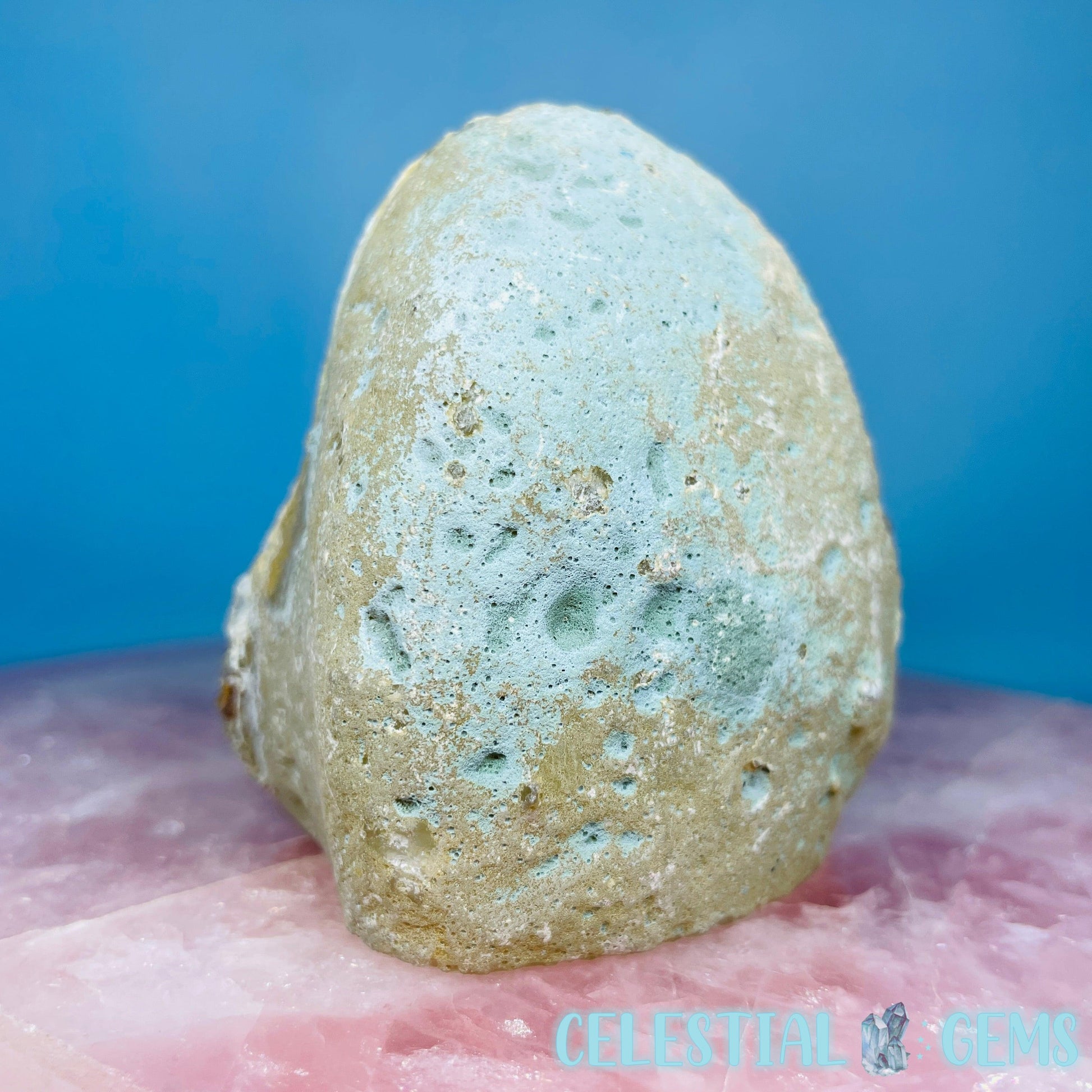 A crystallized Agate geode that is cut flat with a polished face and raw rock on the rear. Lovely sparkles in the Agate crystallization. Approx. 7cm x 6.7cm x 3.4cm.