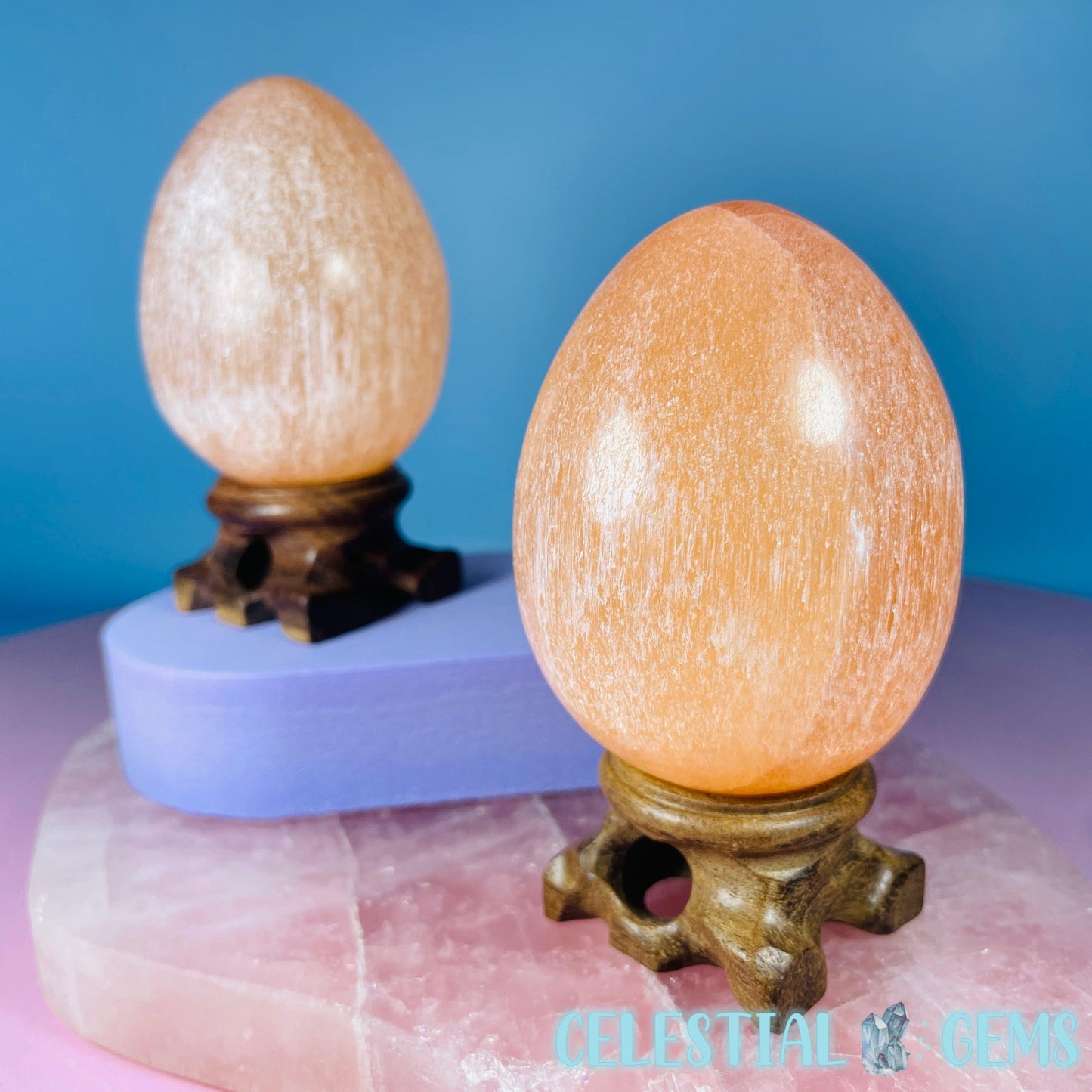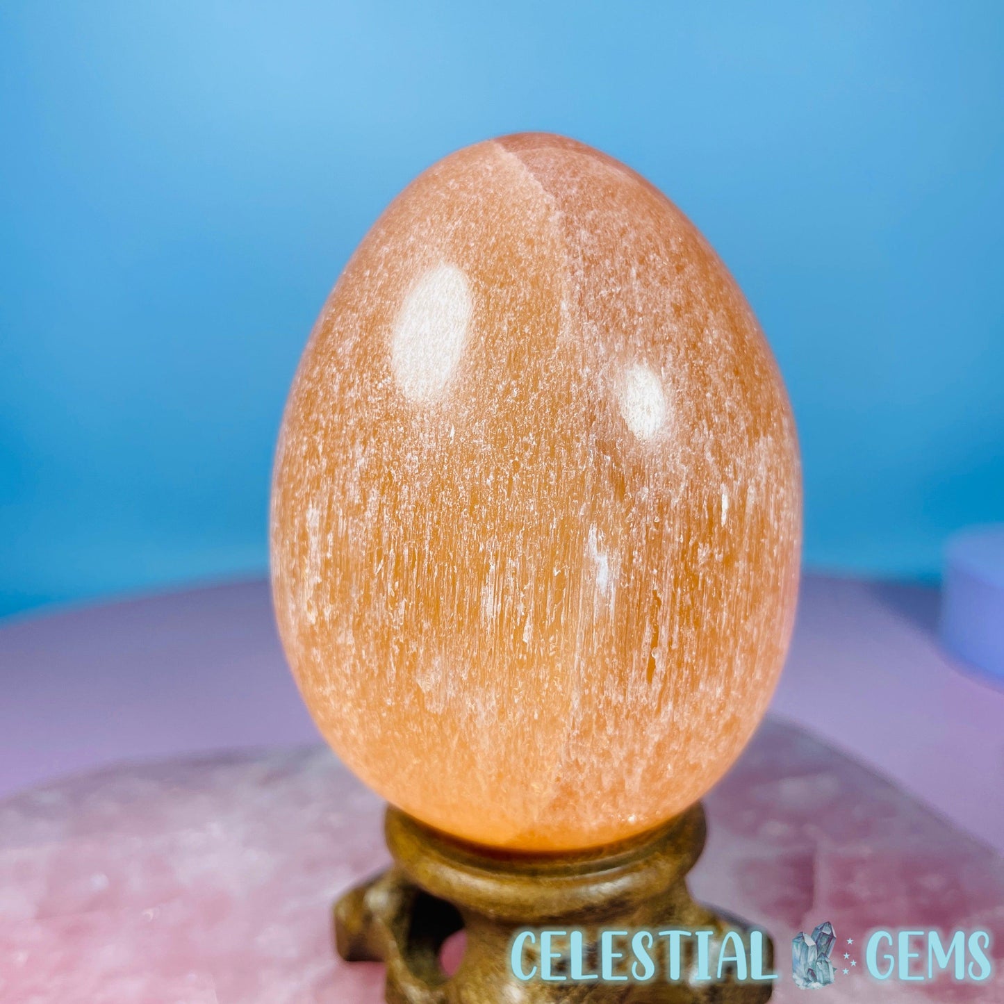 An egg of polished Orange Selenite (AKA Satin Spar). These Selenite items are ideal for cleansing crystals in your home. Place your crystals near to your Selenite to cleanse them.
