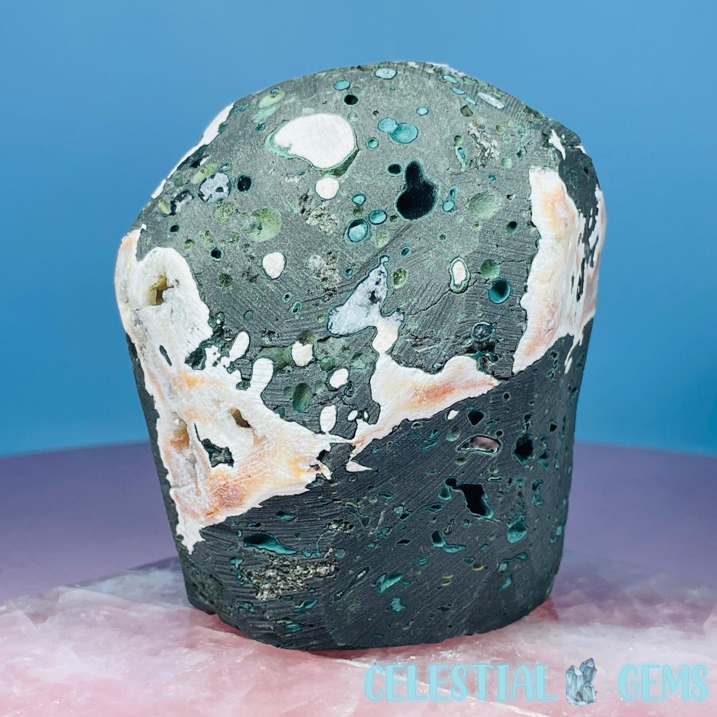 Peach Heulandite Cluster Geode Standing Medium Freeform