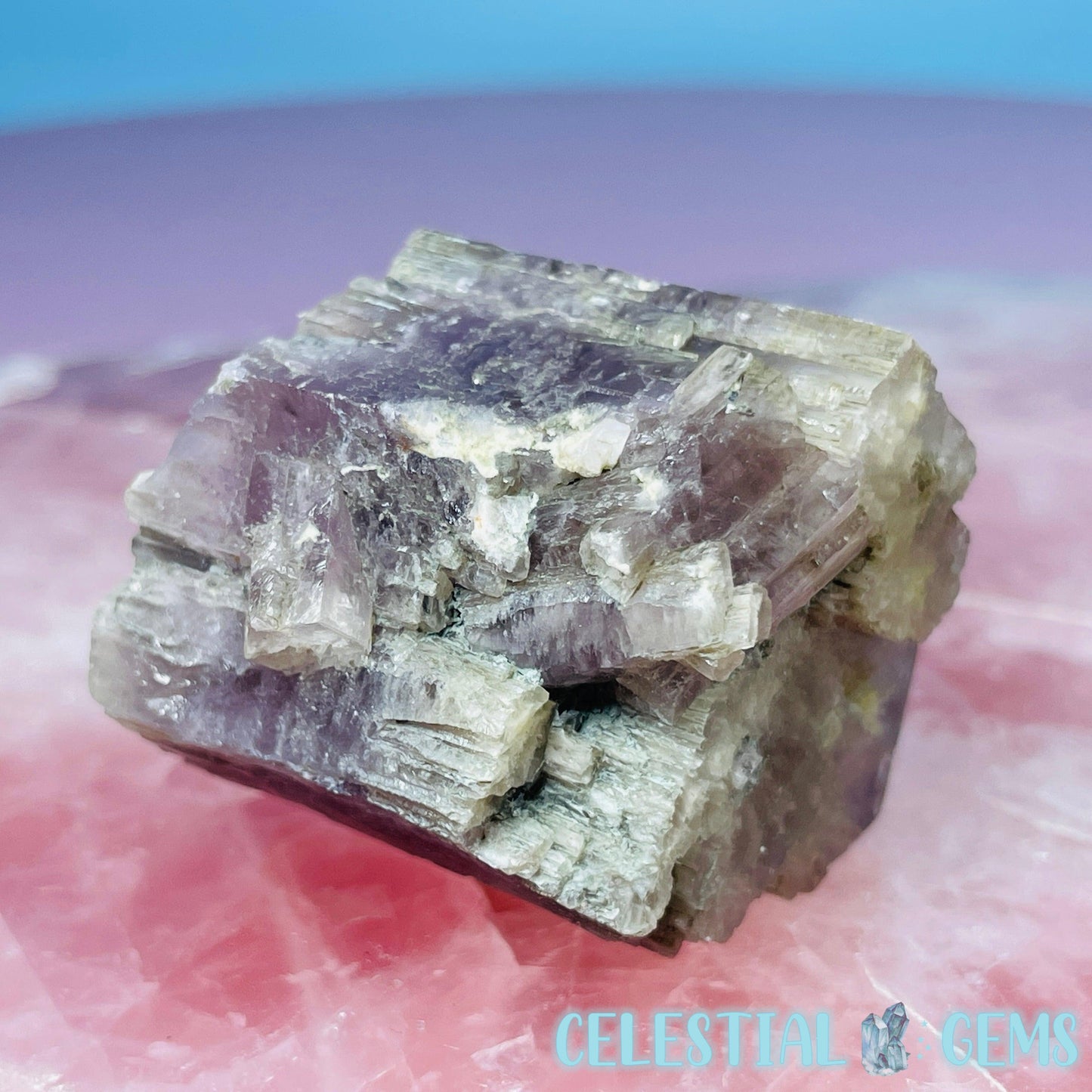 A rare lavender purple coloured natural Aragonite crystal specimen sourced from Spain. This is a famous stone from this locality and displays gorgeous purple, mauve and red hues and excellent hexagonal growth structure, sometimes twinned or clustered.