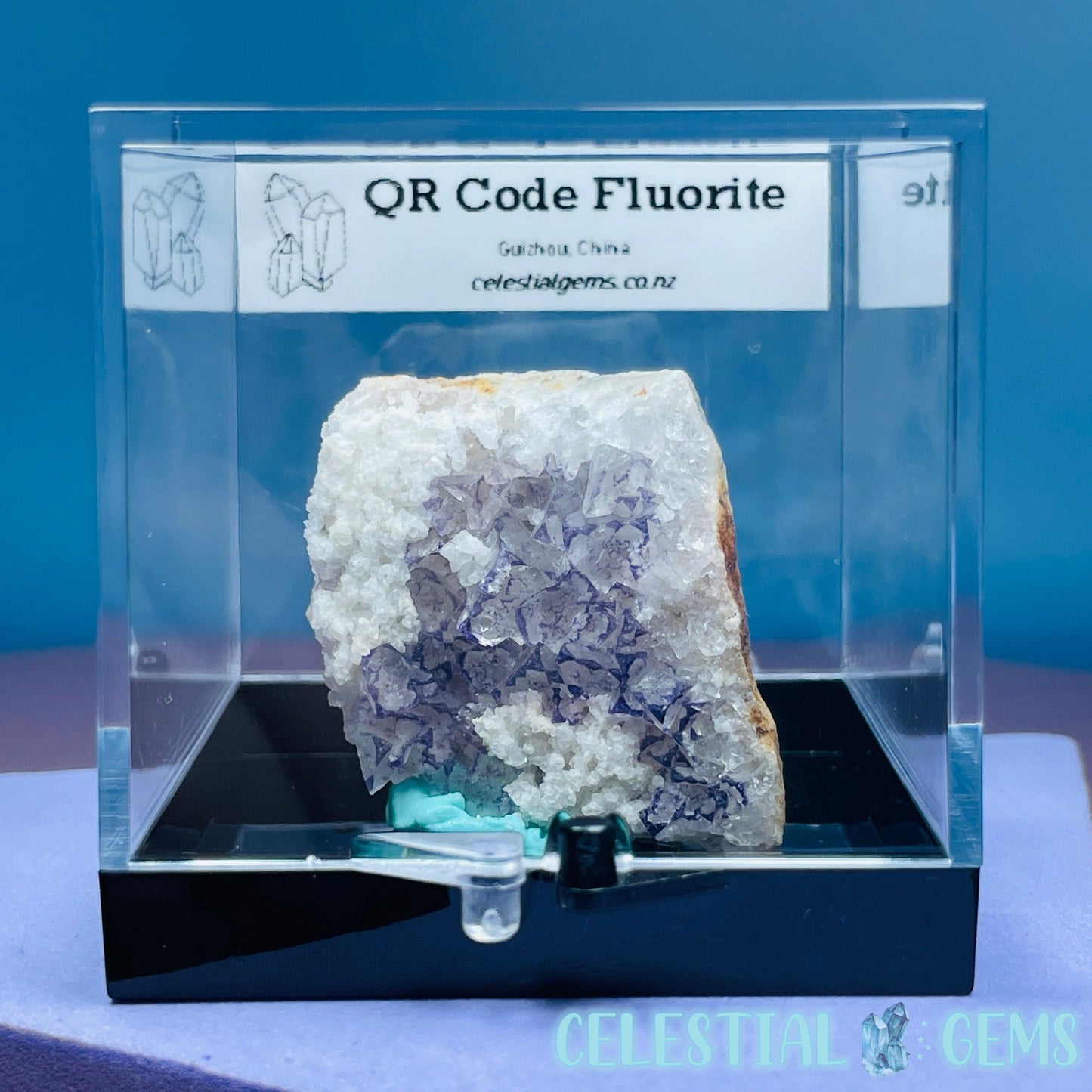 QR code Fluorite is a rare Fluorite specimen that has a purple border that forms along the edge of small cubes, giving it the nickname "QR code Fluorite" or "dice Fluorite". Sourced from Guizhou, China.