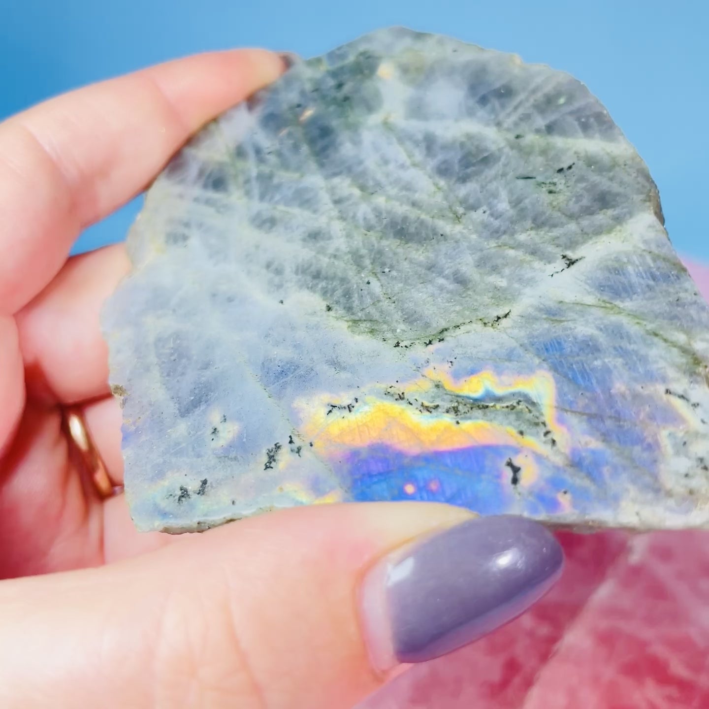 Rainbow Labradorite Small Semi-Polished Slab Piece (Video)