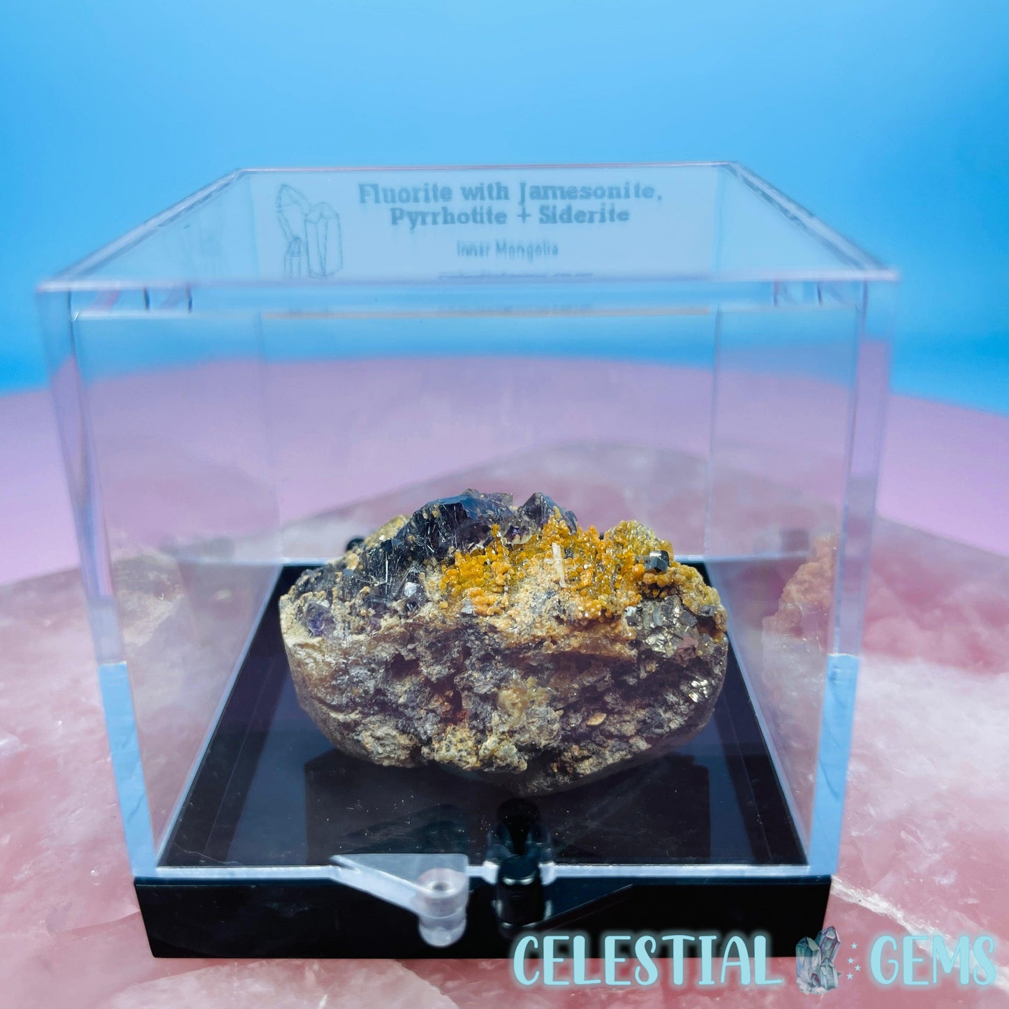 VERY RARE Inner Mongolia Fluorite with Pyrrhotite, Jamesonite + Siderite Small Cluster Specimen