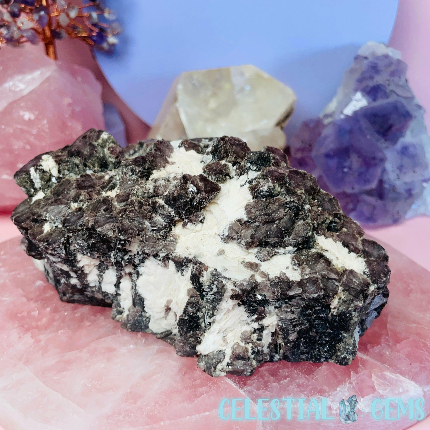 This is a rare example of when Mica replaces Tourmaline in a process called 'pseudomorphism'. The Mica in this specimen has taken on the shape of the original Tourmaline that was once in its place. With added white Albite. Approx. 12.3cm x 7cm x 5.4cm