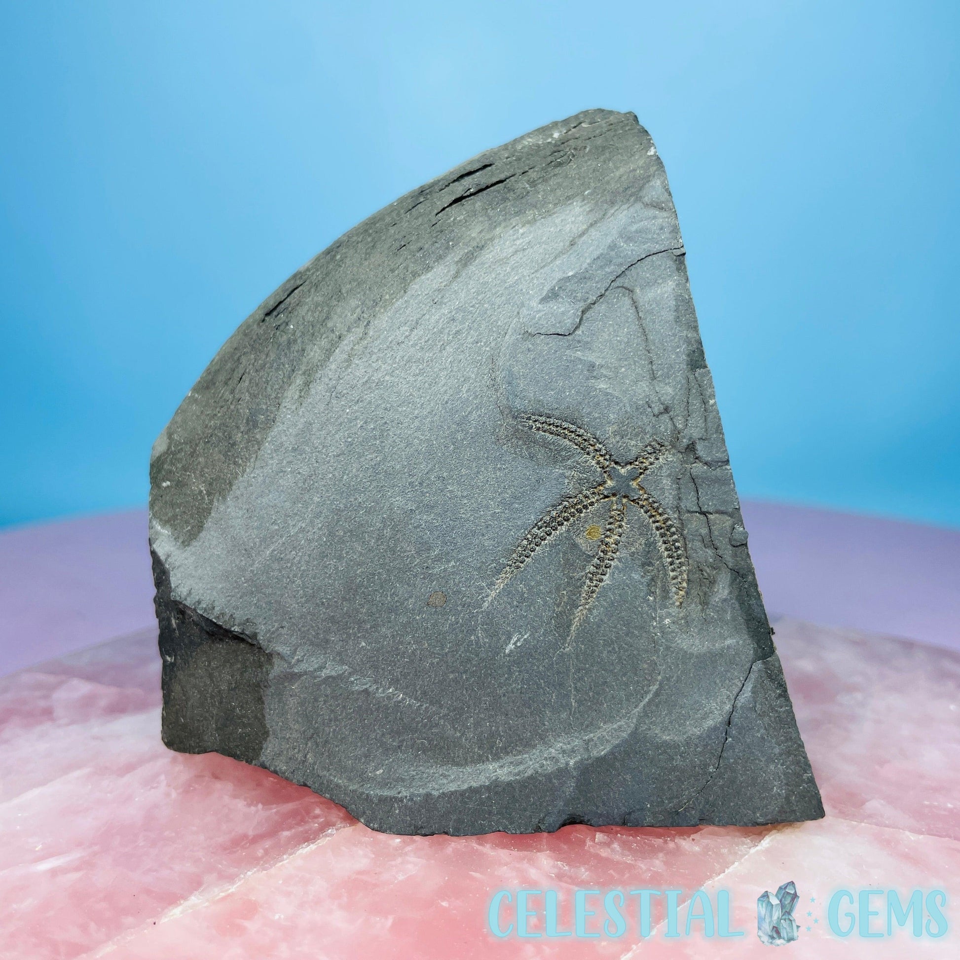 This fossil has an incredibly clear image of the shape of the fallen starfish. Situated in limestone. Mined in Kataoua Formation, Morocco, North Africa.